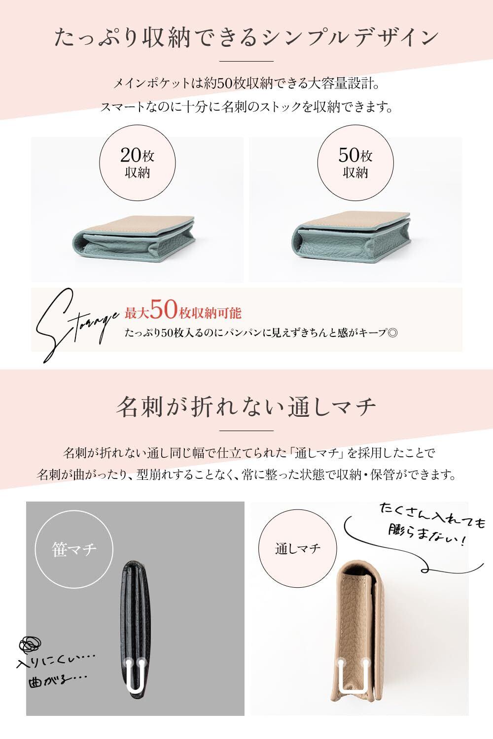 【最大約50枚収納の大容量設計】スマートなのに十分に名刺を収納できます。たっぷり50枚入るのにパンパンに見えずきちんと感がキープ◎