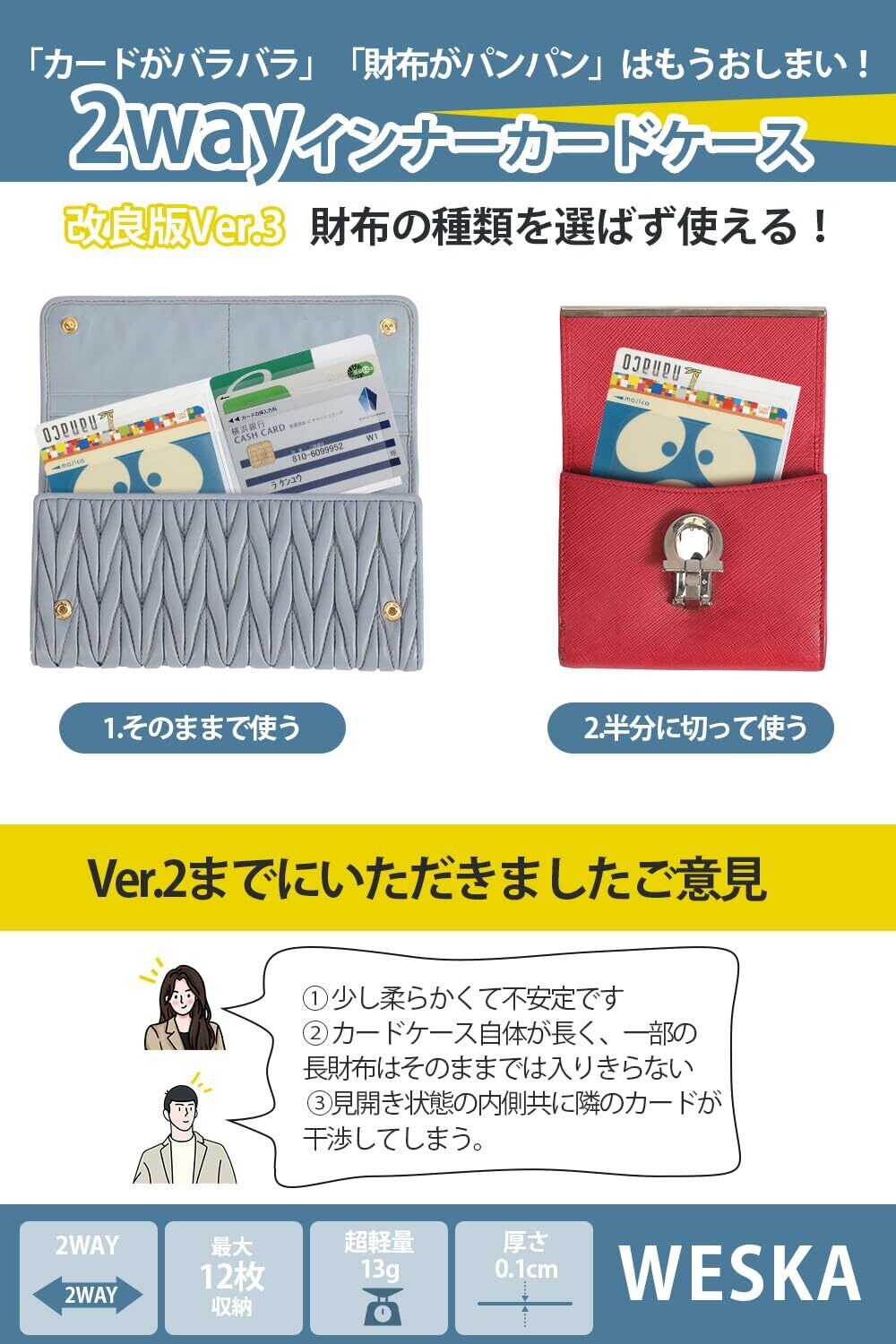 [Weska] 超スリム インナーカードケース いろんな財布に対応 【2WAY 半分に切って使える】 両面12枚収納 財布 に入れるタイプ カード入れ 薄型 クリア (1)