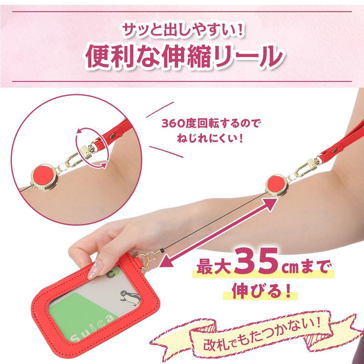 伸縮リール付きだから改札もラクラク