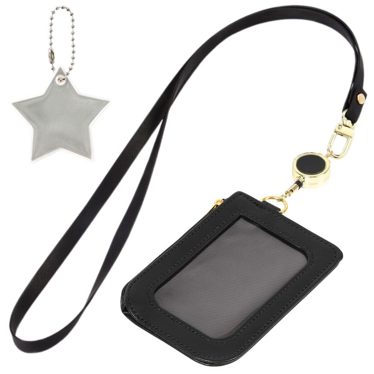 [UPALL] パスケース 子供 落ちない リール付き 定期入れ なくさないパスケース スイカケース 首掛け メンズ レディース (ネックストラップ, ブラック)