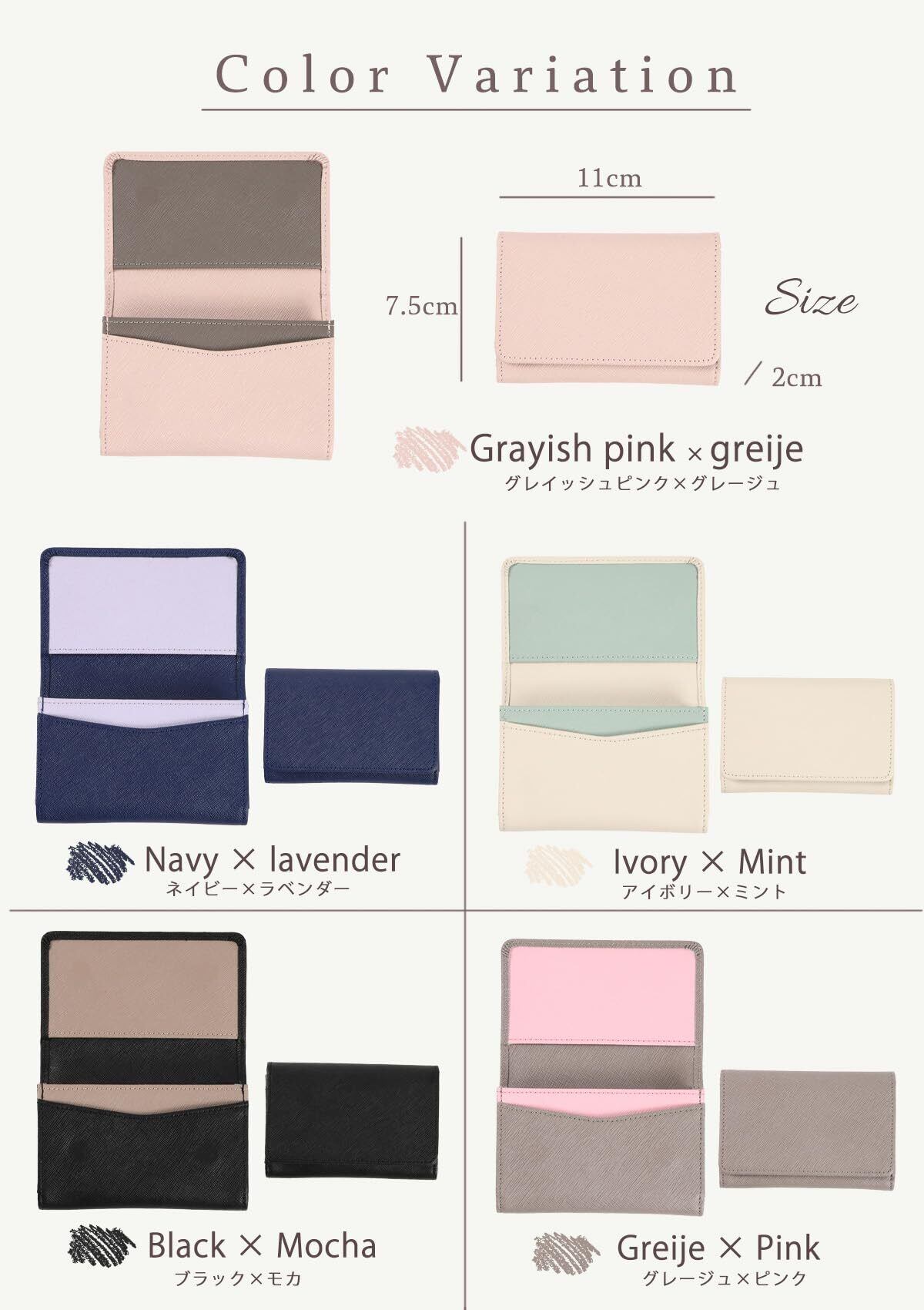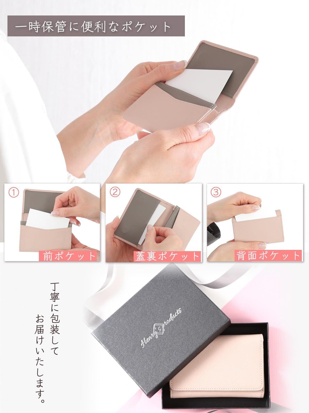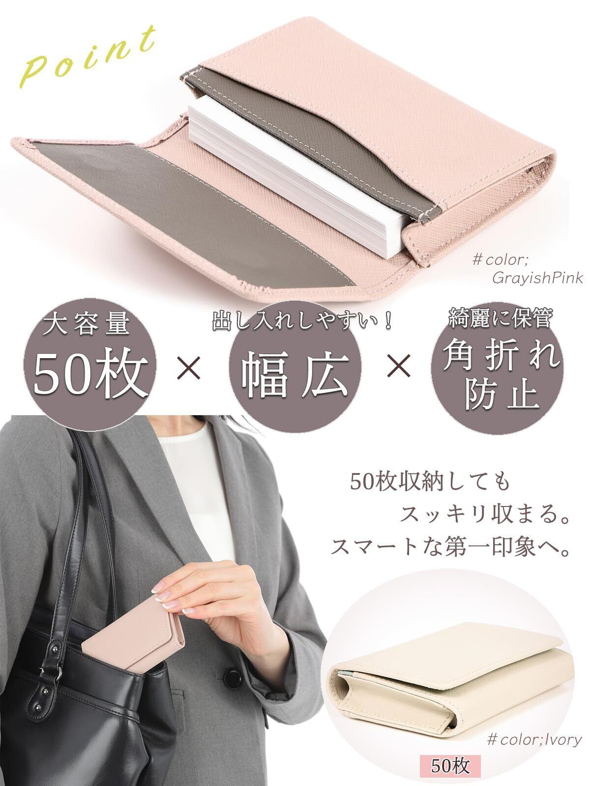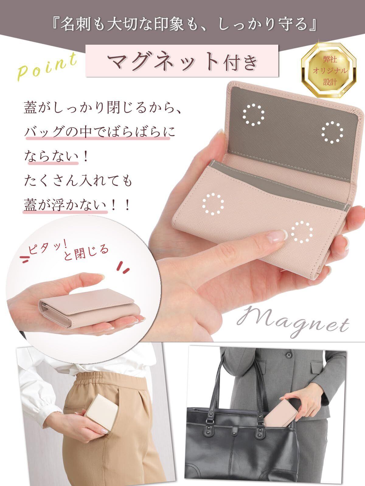 [honey&blue] 名刺入れ レディース 本革 【マグネット付しっかり閉まる】 薄型 大容量 (50枚収納)汚れに強い おしゃれなバイカラー 名刺ケース 名刺ホルダー カードケース (グレイッシュピンク)