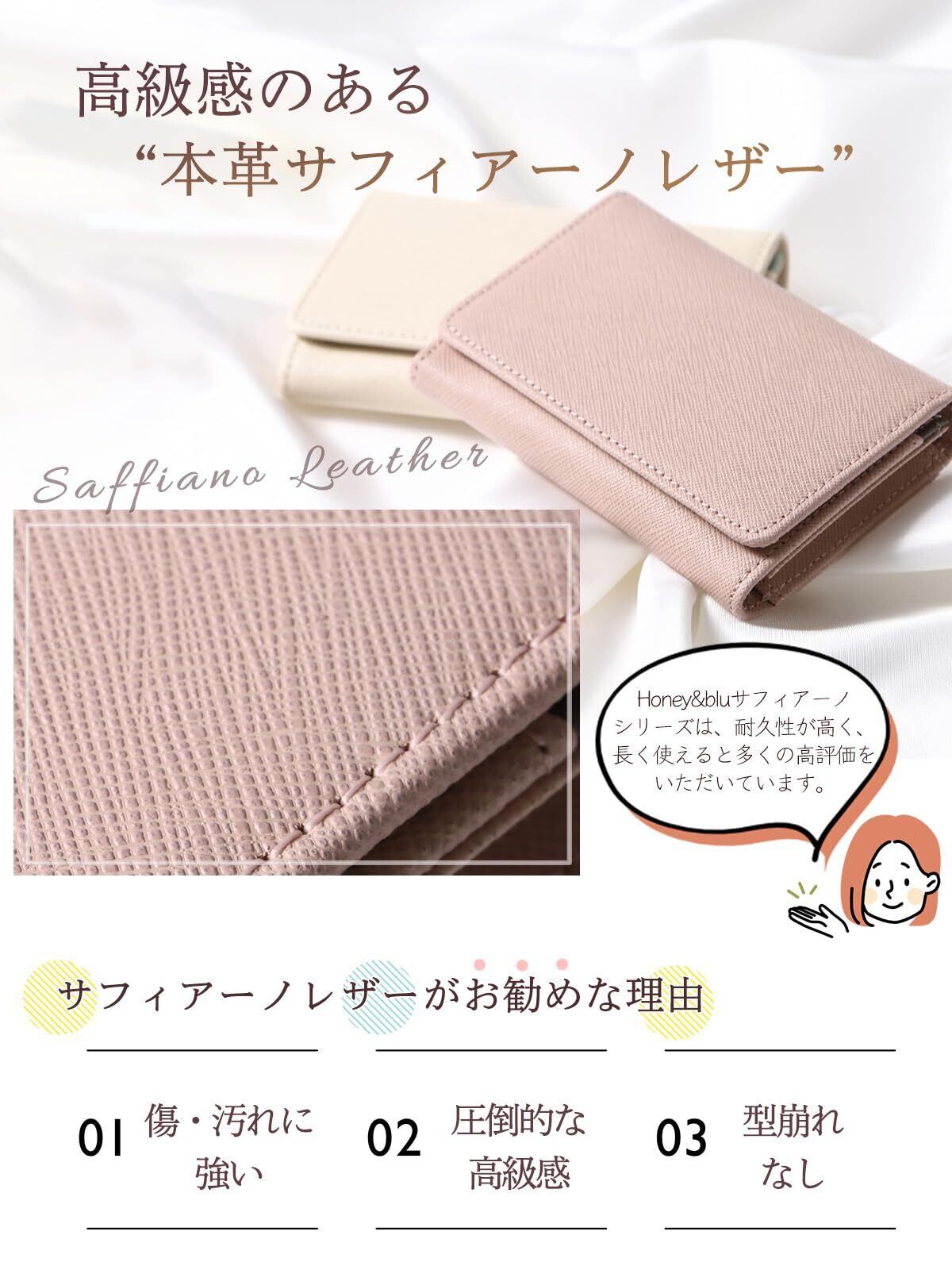 【圧倒的な高級感】艶がある型押しの本革”サフィアーノレザー”は「傷に強い」、「汚れに強い」、「型崩れしない」、「さらっとした触り心地」が特徴の革です。Honey&blueのサフィアーノレザーは、3年使用しても劣化しない!との高評価をいただいている自信のレザーです。