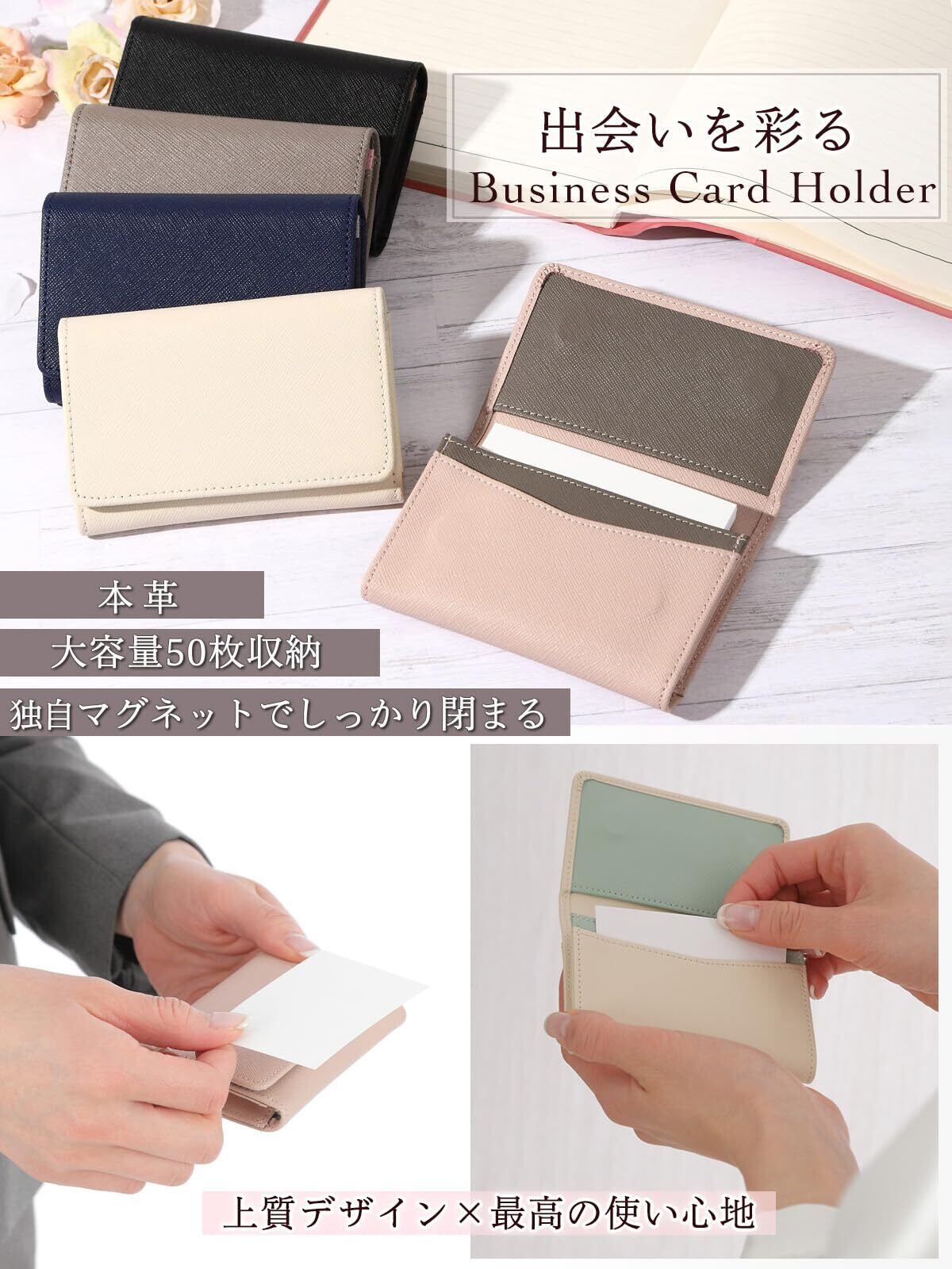 【2022最新】[honey&blue] 名刺入れ レディース 本革 【マグネット付しっかり閉まる】 薄型 大容量 (50枚収納)汚れに強い おしゃれなバイカラー 名刺ケース 名刺ホルダー カードケース (グレイッシュピンク) | 無意味ステッカー