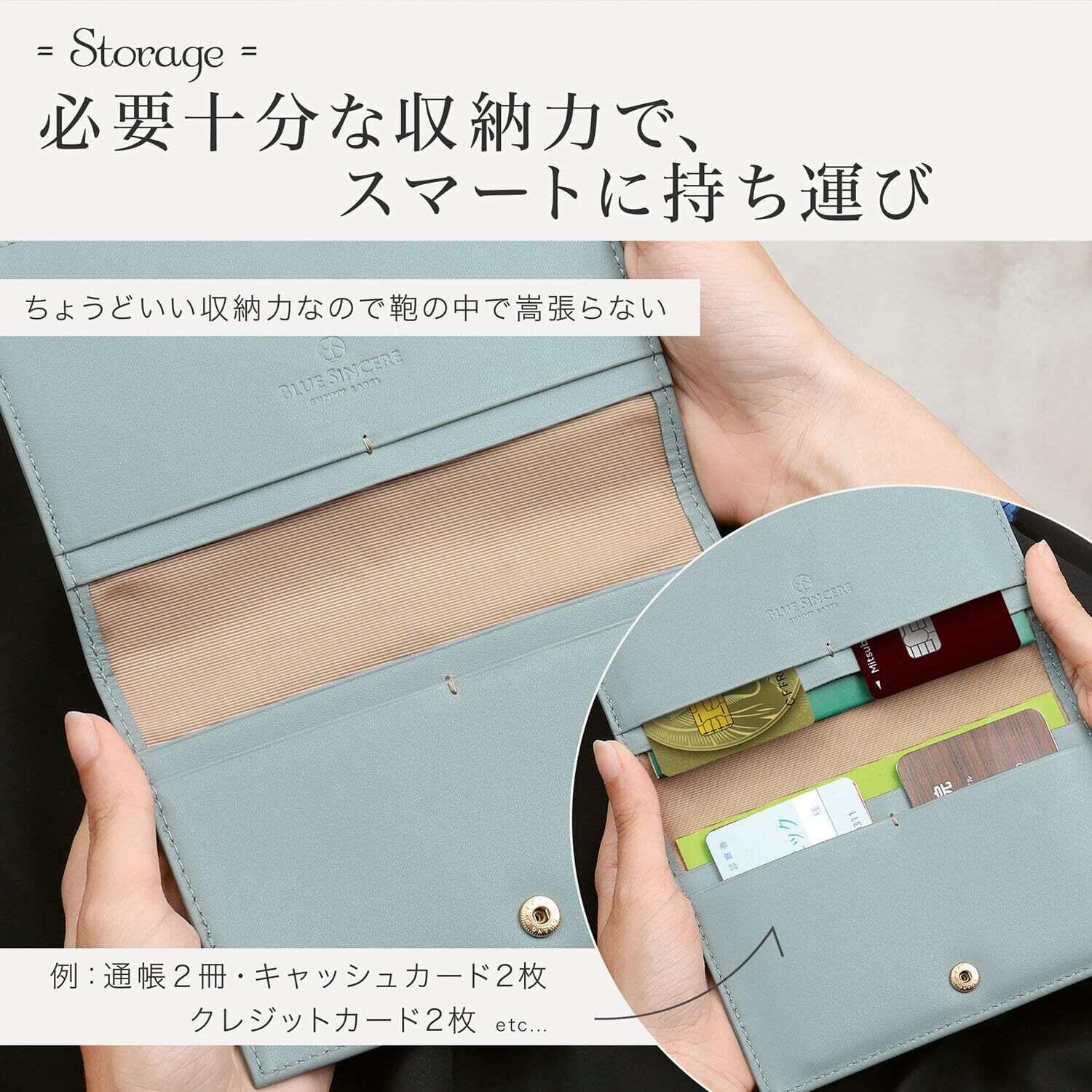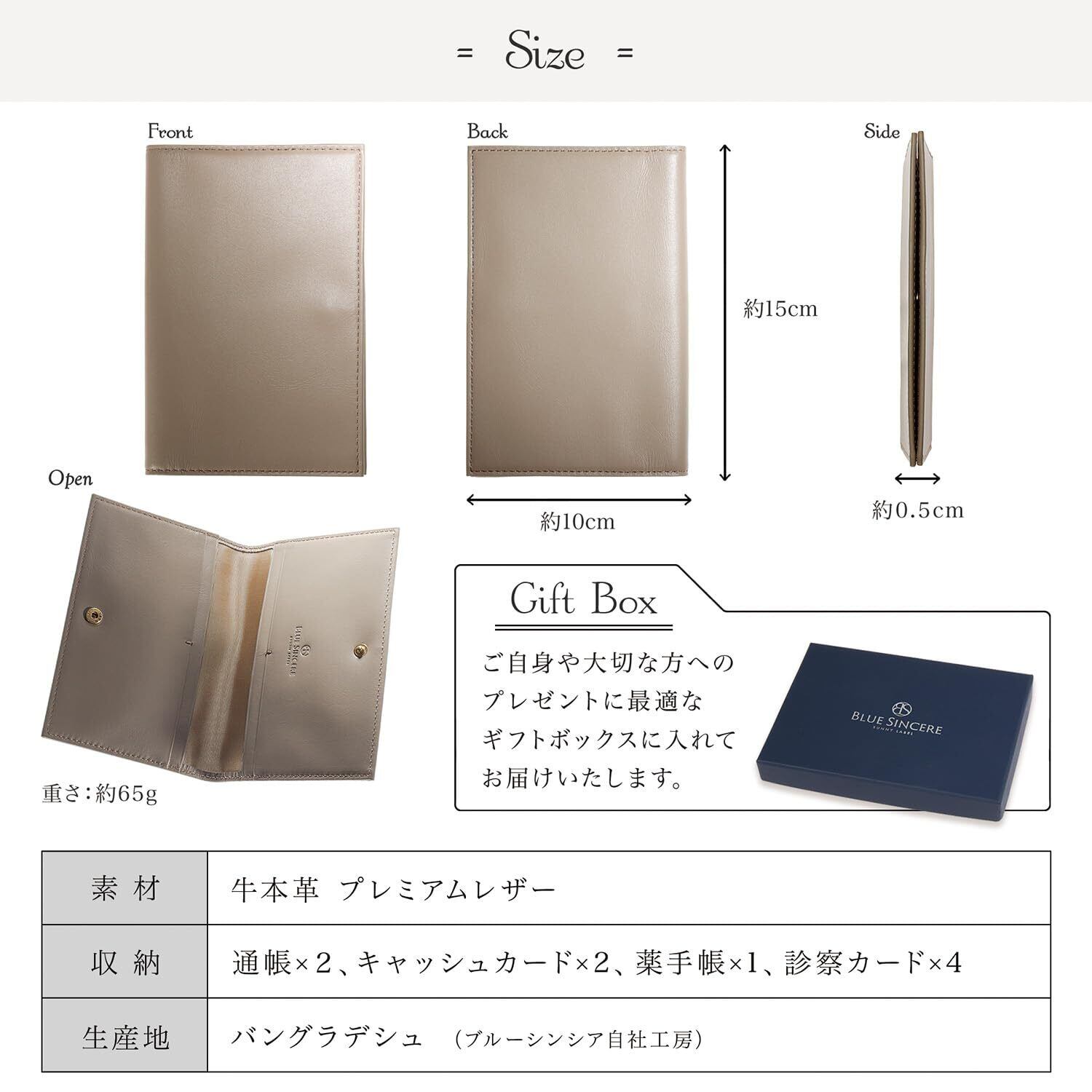 【ブルーシンシアとは?】 「ブランドの発展とともに、バングラデシュの社会問題を解決する」という理念を掲げ、 バッグや財布を自社工場のバングラデシュの職人たちと、その土地の素材の可能性を追求し、 先進国でも通用する高機能なプロダクトを生産しています。 【通帳やカードを、これひとつでスッキリ管理!】銀行口座はいくつ持っていますか?通帳レスが進む中、ハッキングの不安もあり、手元に残しておきたい方も多いはず。でも、通帳やカードが増えると管理が面倒…。そこで誕生したのが、BLUESINCEREのスリム通帳ケース。主婦の皆さんの声をもとに、理想の機能を取り入れつつスリムなデザインを実現しました。通帳4冊とカードが最大8枚を収納可能で、口座管理もラクラク。毎日をもっと快適にする、頼れる一冊。家族の通帳やカードをまるごと入れて、これひとつでスッキリ収納しませんか?