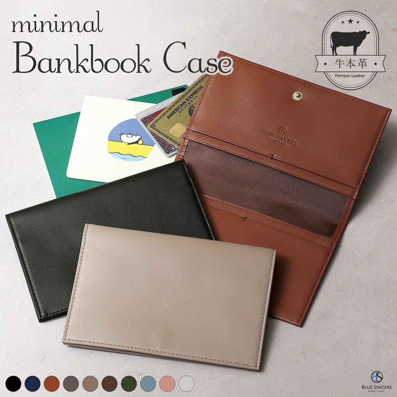 【新着商品】[BLUE SINCERE] 通帳ケース 薄型 本革 磁気防止 カード8枚収納 通帳4冊 通帳入れ 革 レザー パスポート カードケース / TC5 (スワニーピンク) | 無意味ステッカー