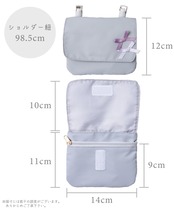point.1〔小さいのに抜群の収納力〕 邪魔にならないようにコンパクトなサイズ感。 【便利な3つのポケット】 ①開けてすぐハンカチなど取り出せるネームタグ付きポケット。 ②小さいものでも落とさないファスナー付きポケット ③ティッシュポケット