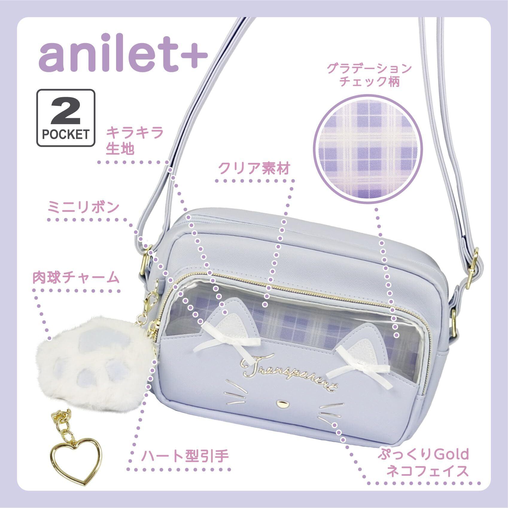 [anilet+] ネコリボン ショルダーバッグ バッグ ネコ 肉球 リボン 女の子 小学生 ガールズ 通学 通園 お出かけ