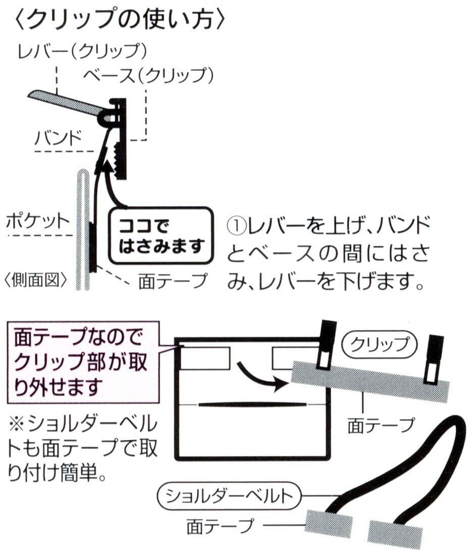 クリップ付きでスカートやパンツ、バッグの内側に取り付けが簡単