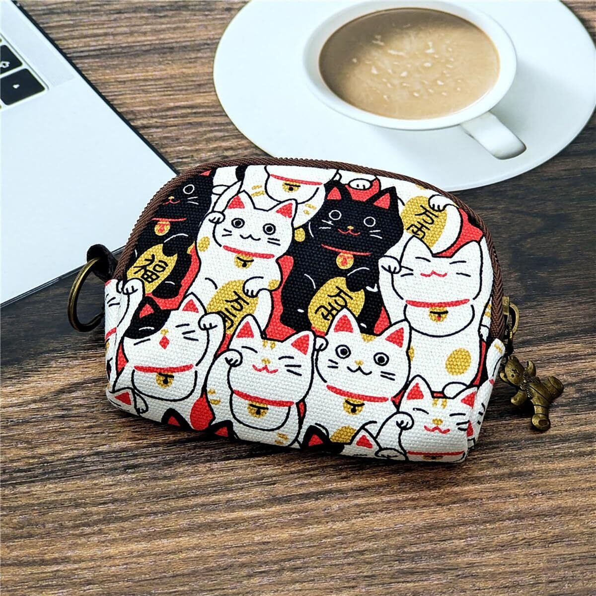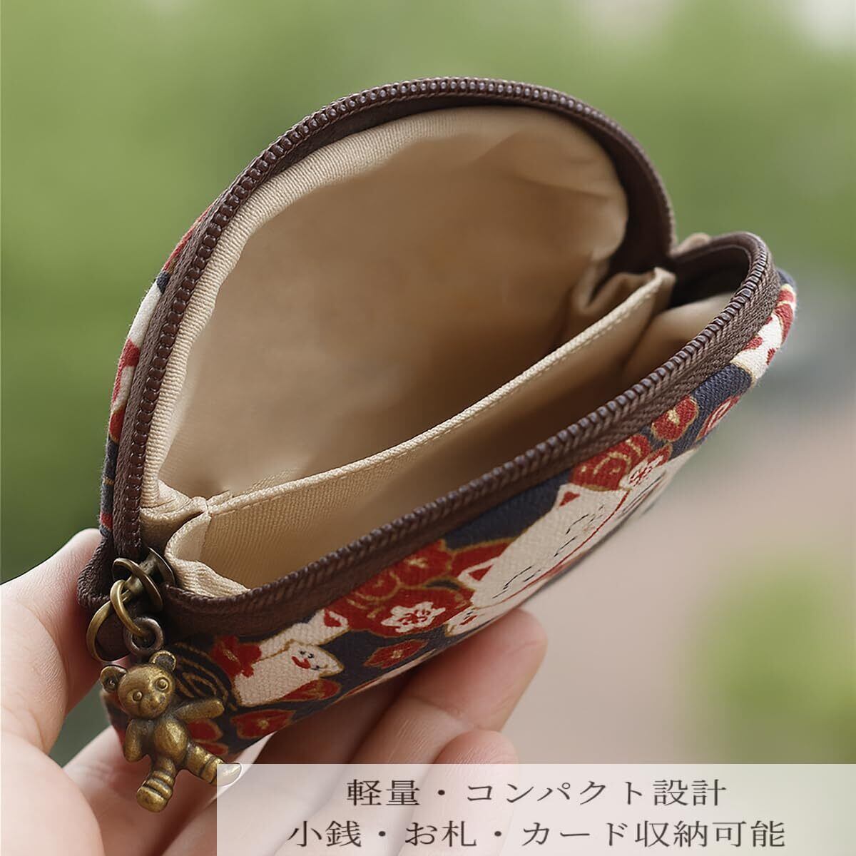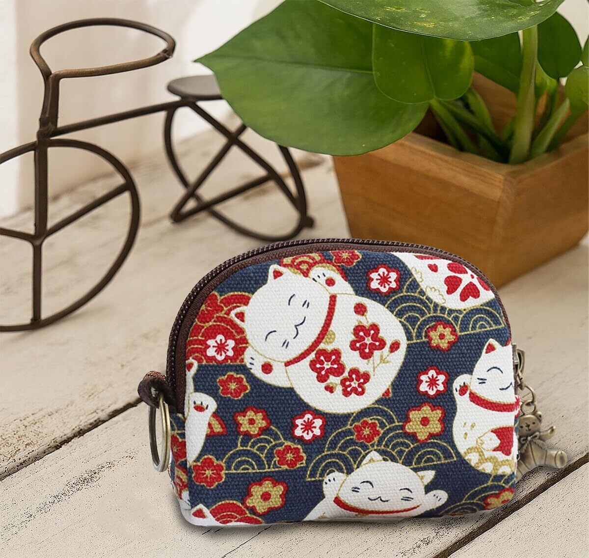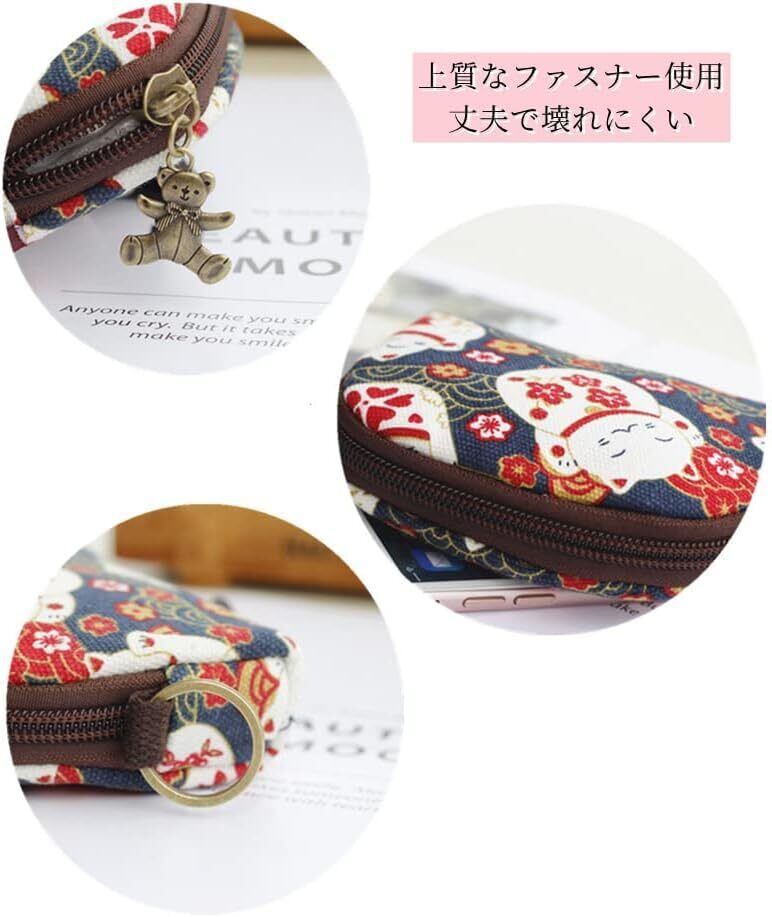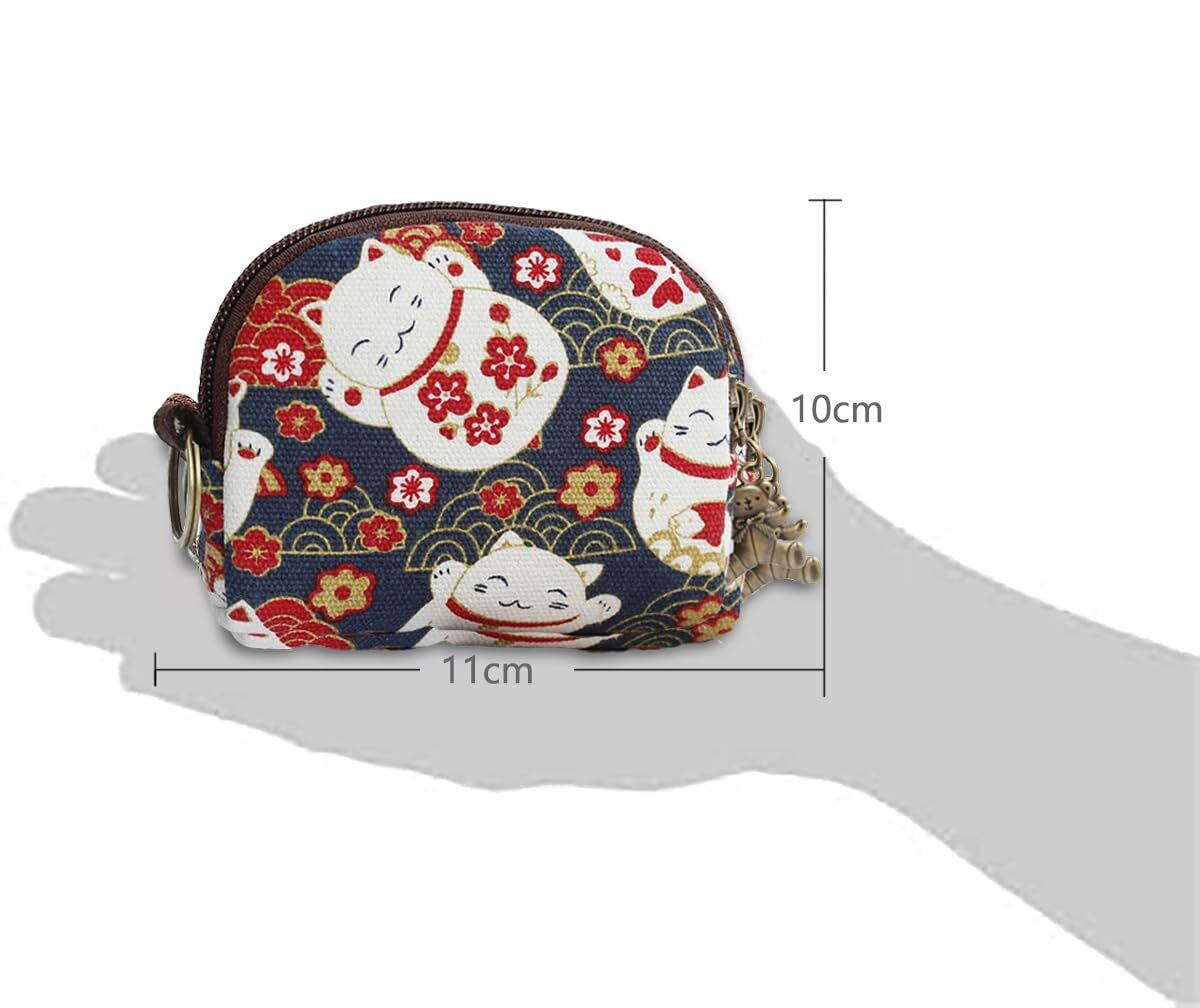 Lmhanミニ財布 小銭入れ コインケース ファスナー式 全3色 コンパクト収納ポーチ (和柄キャンバス)