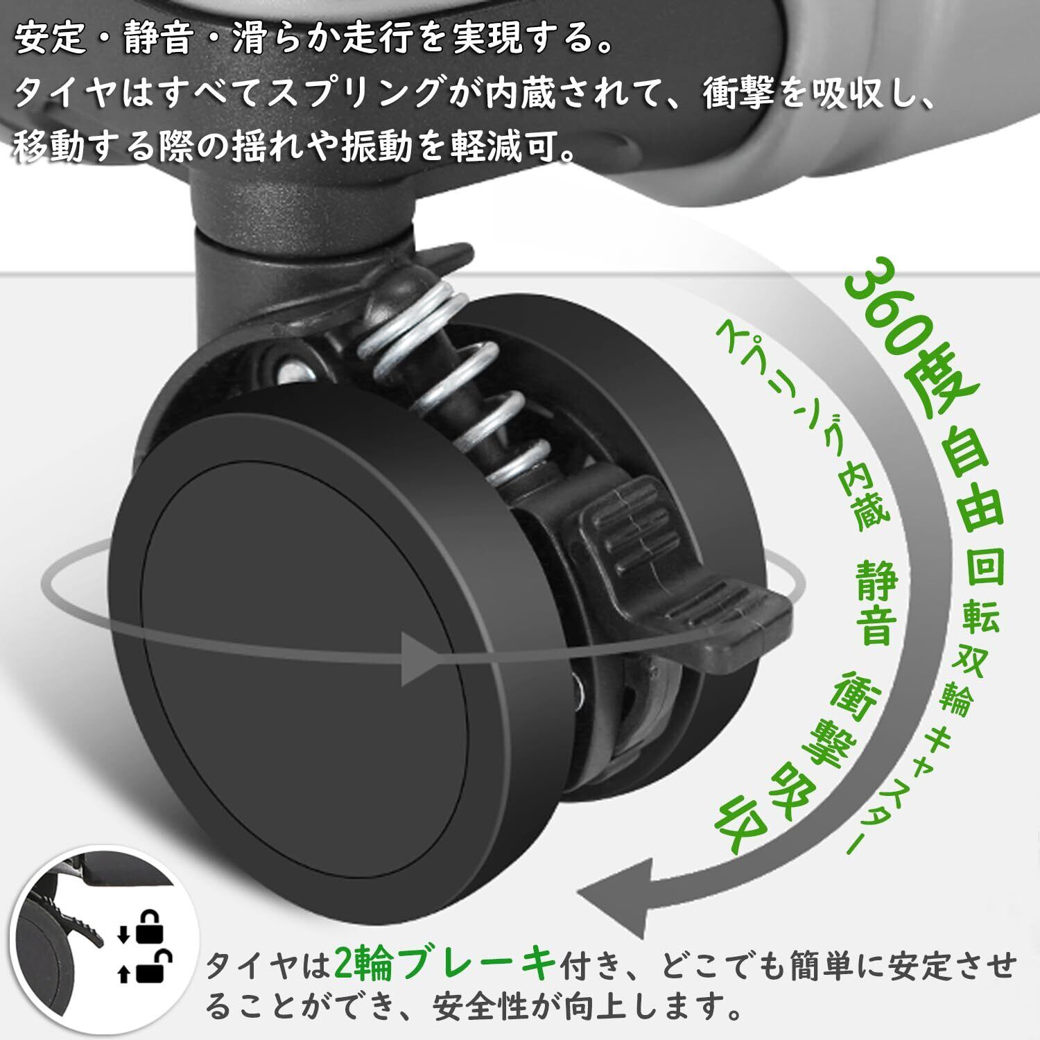 【安心できる安全設計】2個のキャリーバーに設計され、子供上半身のふらつきを防止してしっかり安定させます。そのうえ、付属する滑り止め加工のクッション性シートには左右の固定ベルト付き、長さ調節可能で、子供体の中心を支えて固定します。スプリングを内蔵する360度の自由回転双輪キャスターは、衝撃を吸収し、スムーズな滑りを実現します。タイヤはブレーキ付き、スーツケースが簡単に安定させることができ、安全性も向上します。