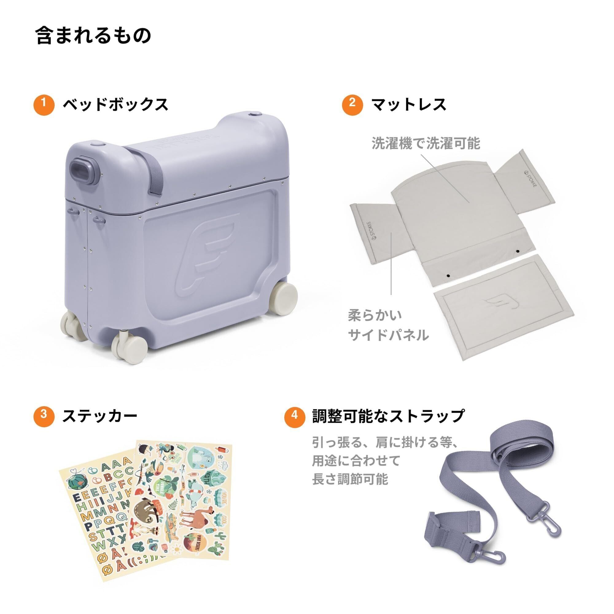 Stokke(ストッケ)ジェットキッズ キッズ スーツケース 子供用 本体 アークティックブルー キャリーケース ベッドボックス 乗れる 座れる 旅行 飛行機 列車 収納 ステッカーセット付 ライドオン可能