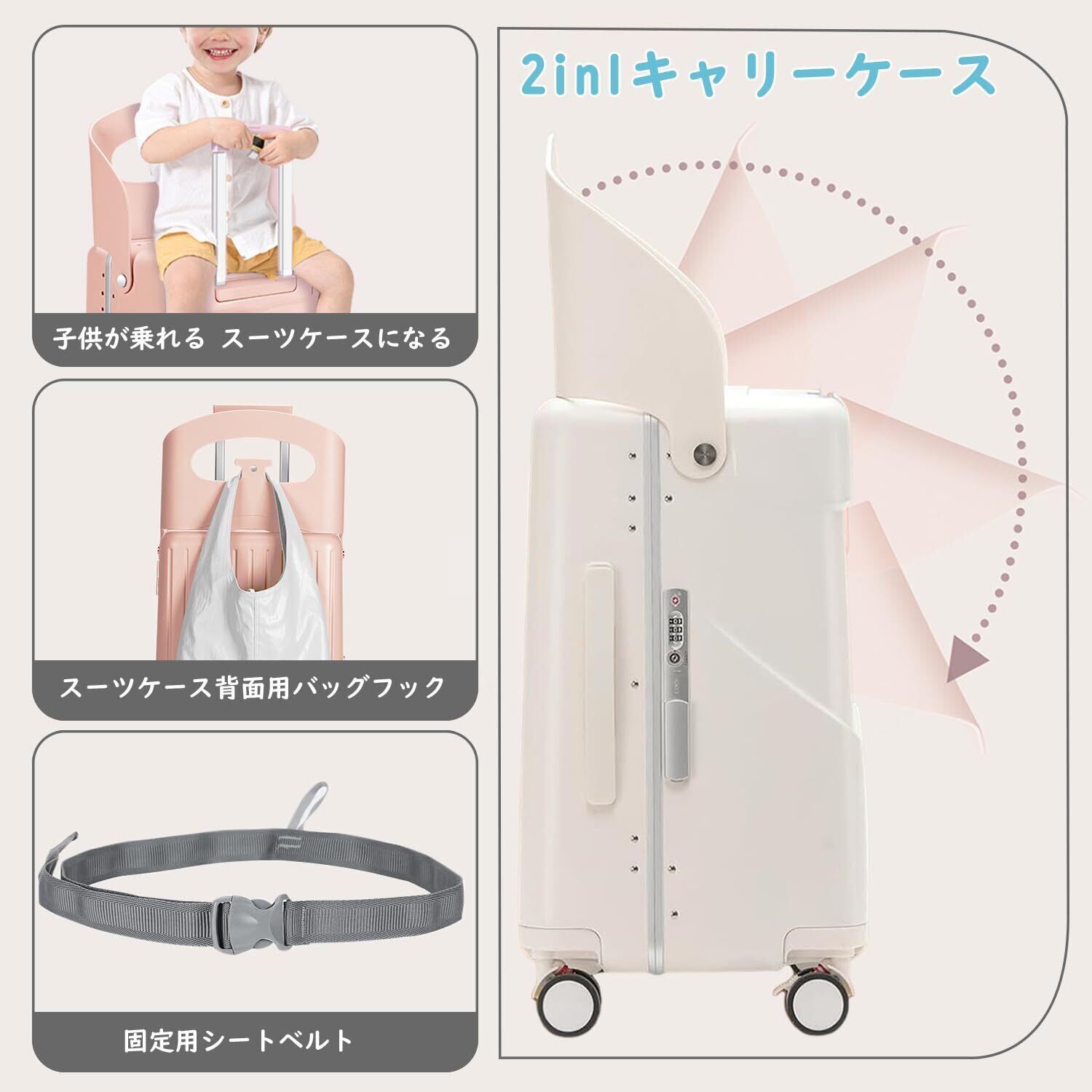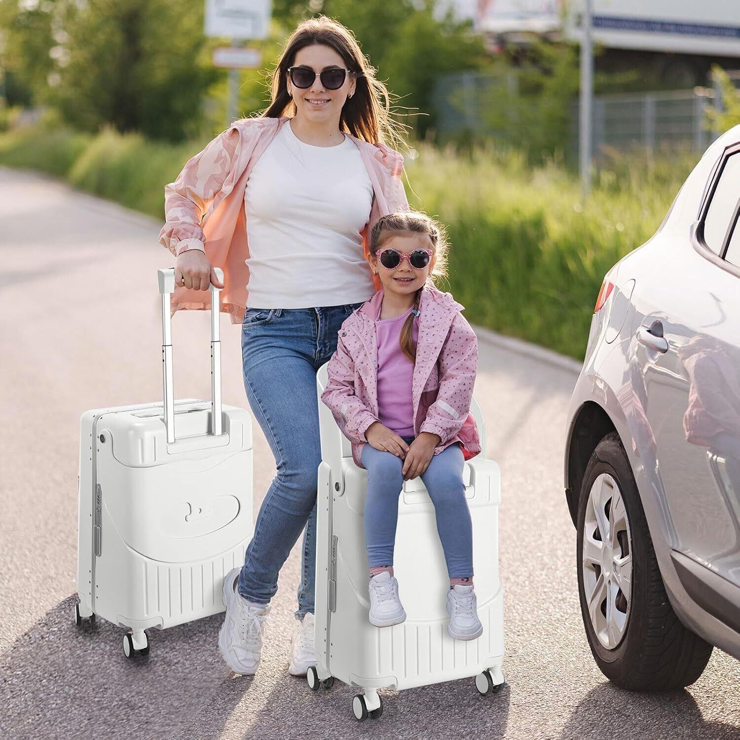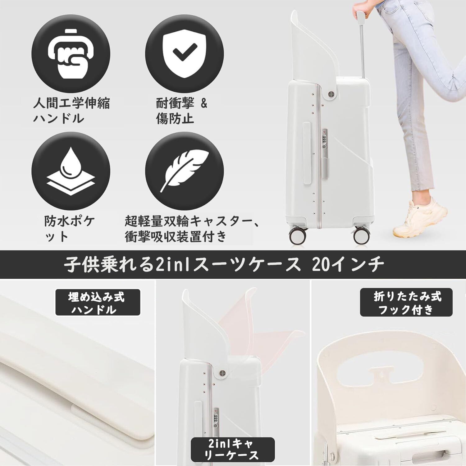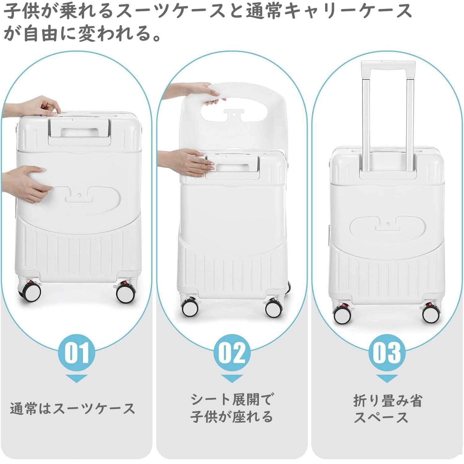[ChicCarry] 子供が乗れるキャリーケース 機内持ち込み キャリーバッグ 子供 乗る 軽量 大容量 キッズ 乗れる スーツケース 耐衝撃 TSAロック ストッパー付き ダブルキャスター 子連れ 旅行 帰省 ホワイト
