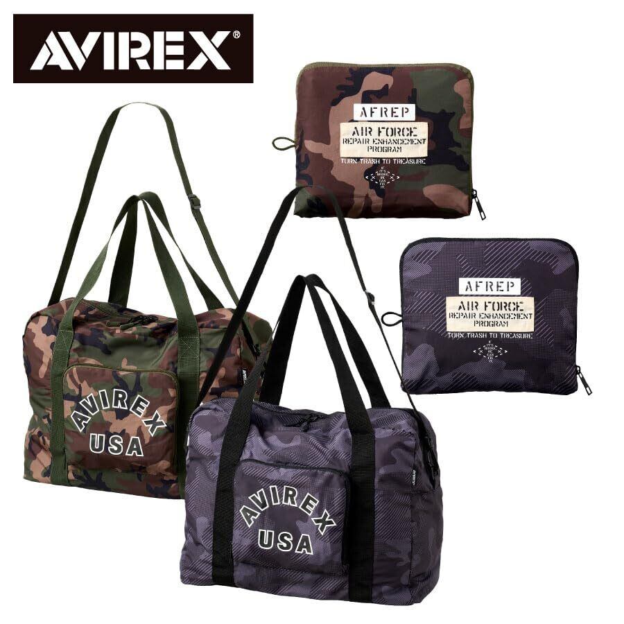 迷彩柄にブランドのアイコンであるAVIREX USAロゴが入っています。
