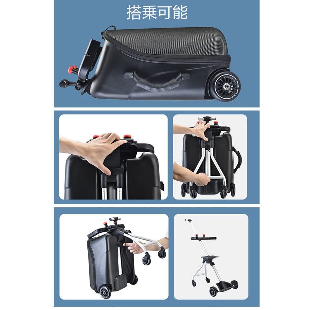 [Dudode] 子供用スーツケース乗れる キッズキャリーケース ラゲッジ キャリングケース 乗れ るトラベルケース 搭乗 子供用のカートとして利用できます, 子供の遊び心に満足 旅行・遠足・帰省に便利 35L大容量 最大積載重量60kg 20インチ (Black)