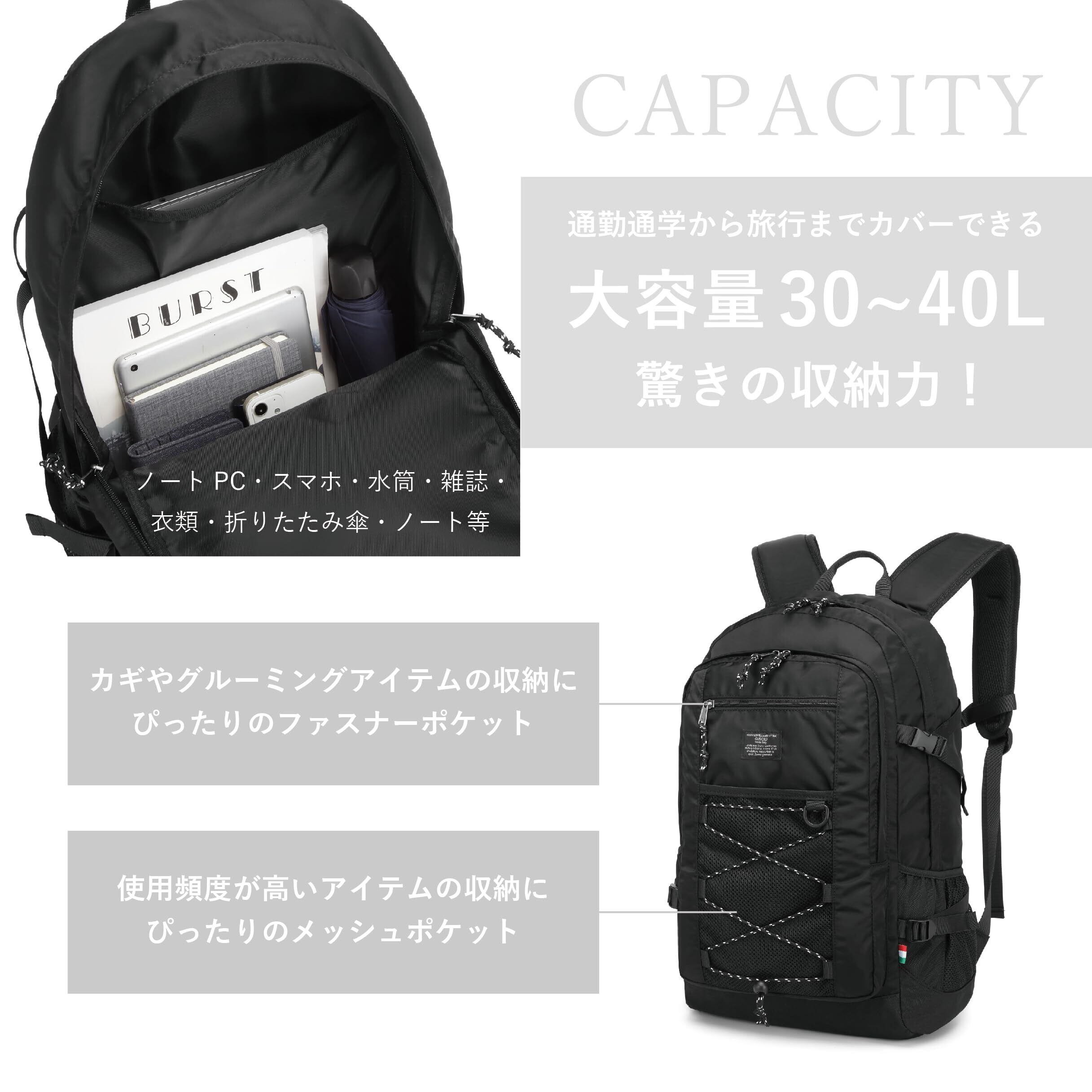 【 TVドラマ使用】【グッシオ】 大容量 リュック レディース カジュアル アウトドア 軽量 撥水 通勤 通学 A4 旅行 収納 ポケット 外ポケット シンプル メンズリュック ユニセックス 121001