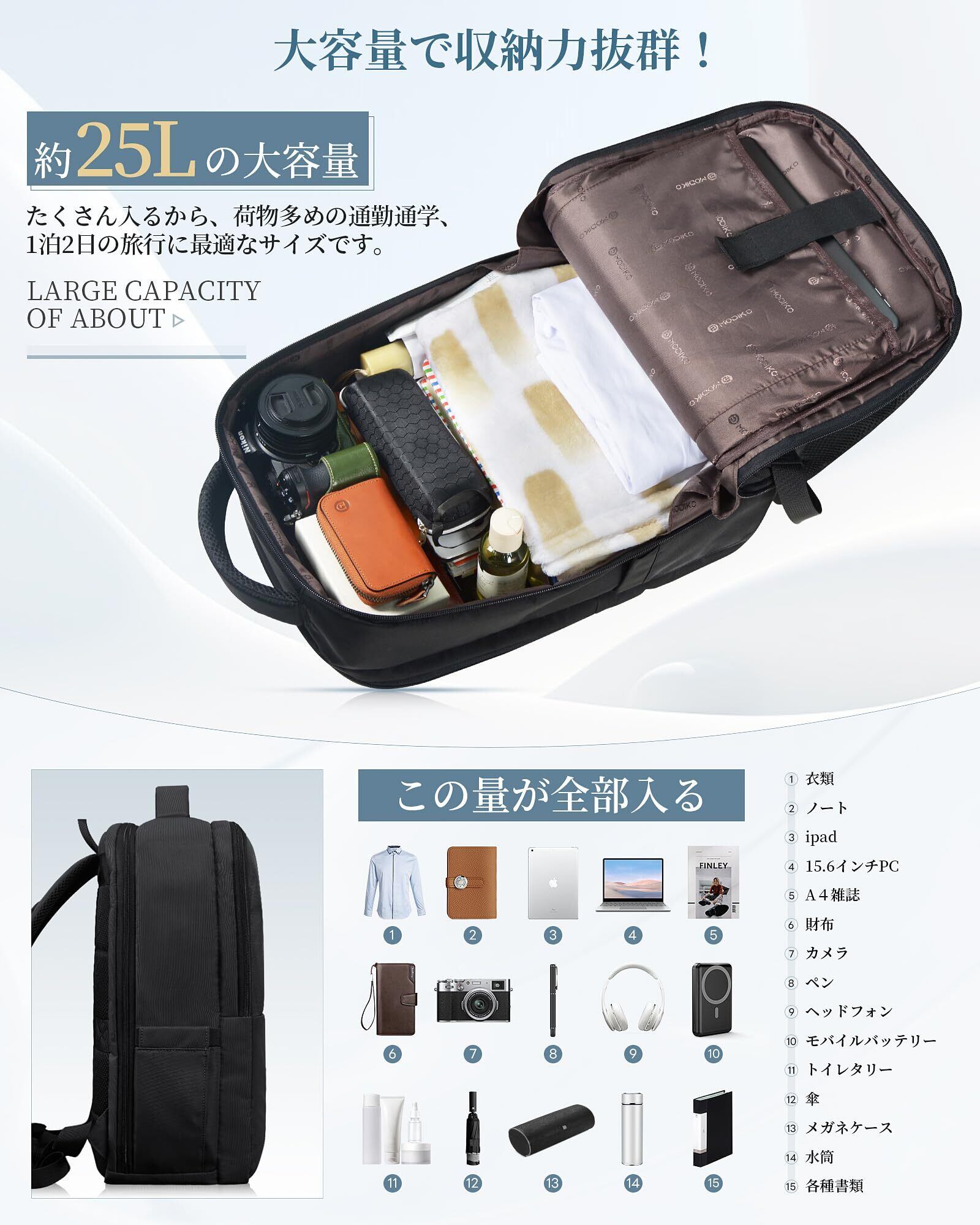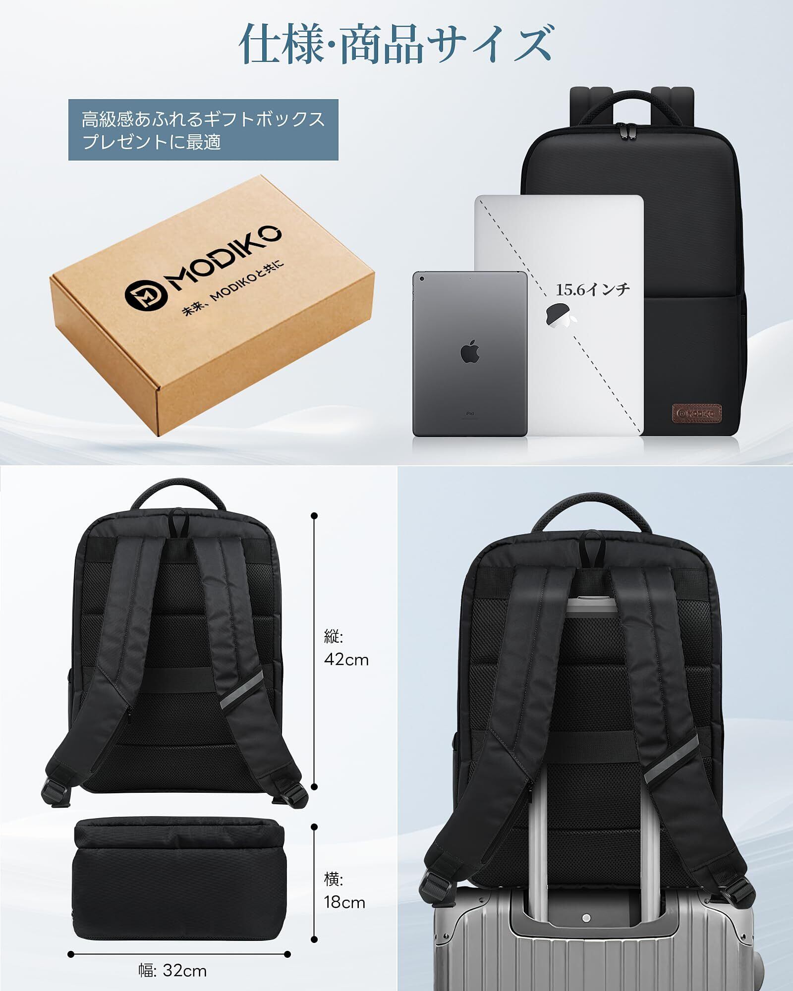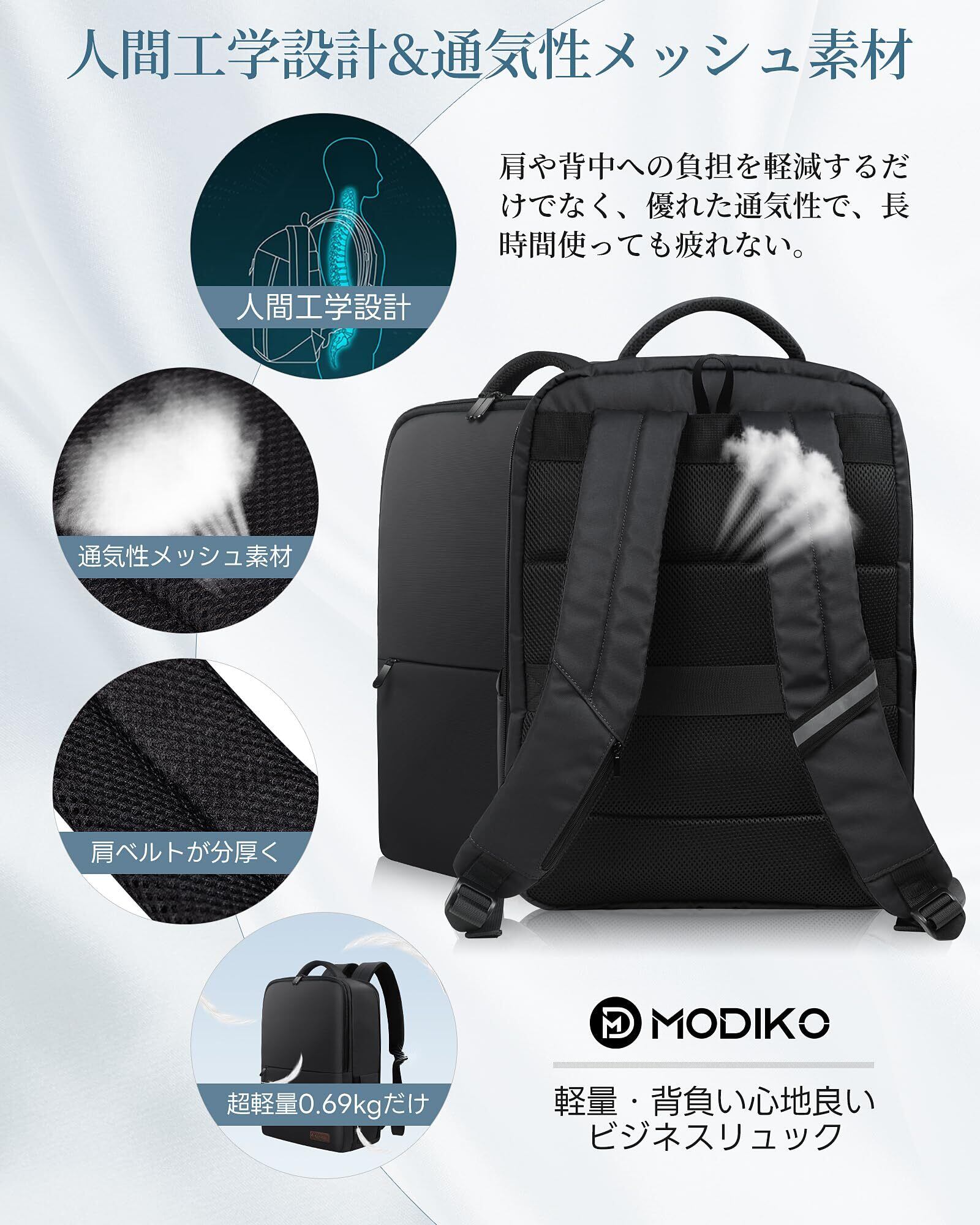 [Modiko] ビジネスリュック メンズ リュック 大容量 防水 撥水 リュックサック バックパック 15.6インチPC パソコン 軽量 A4収納可 耐久性 通勤用 就活 出張 高校生