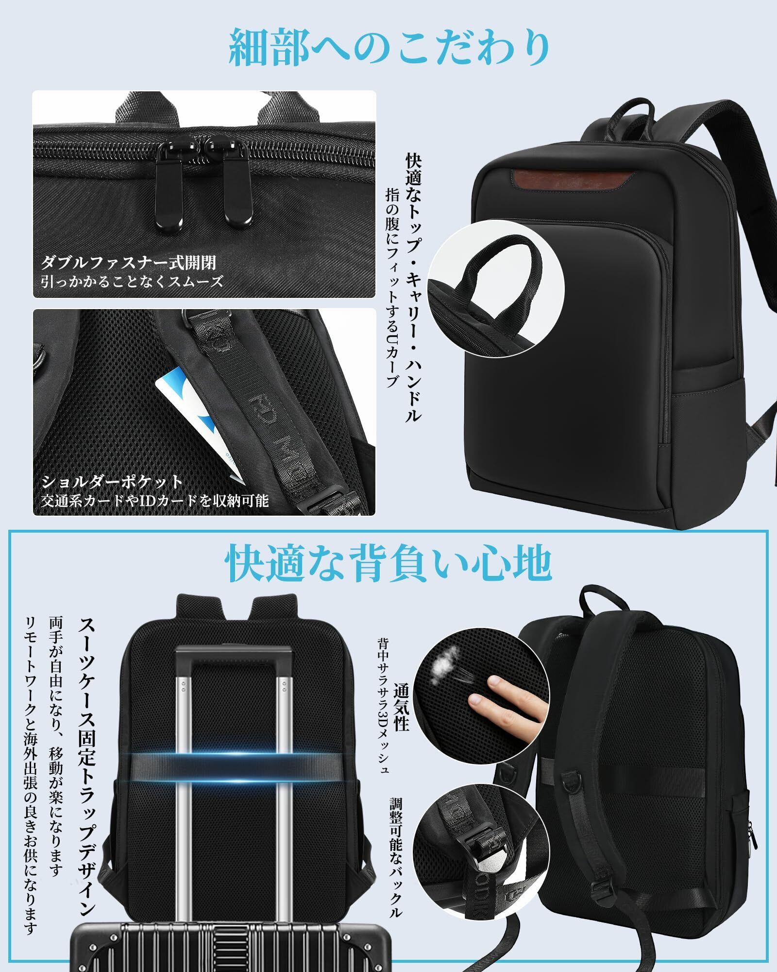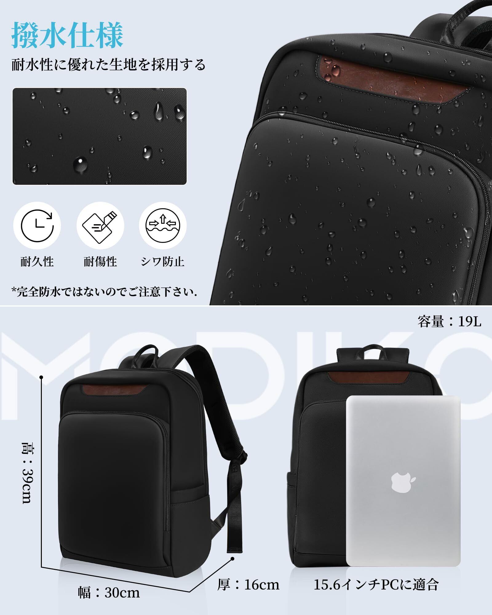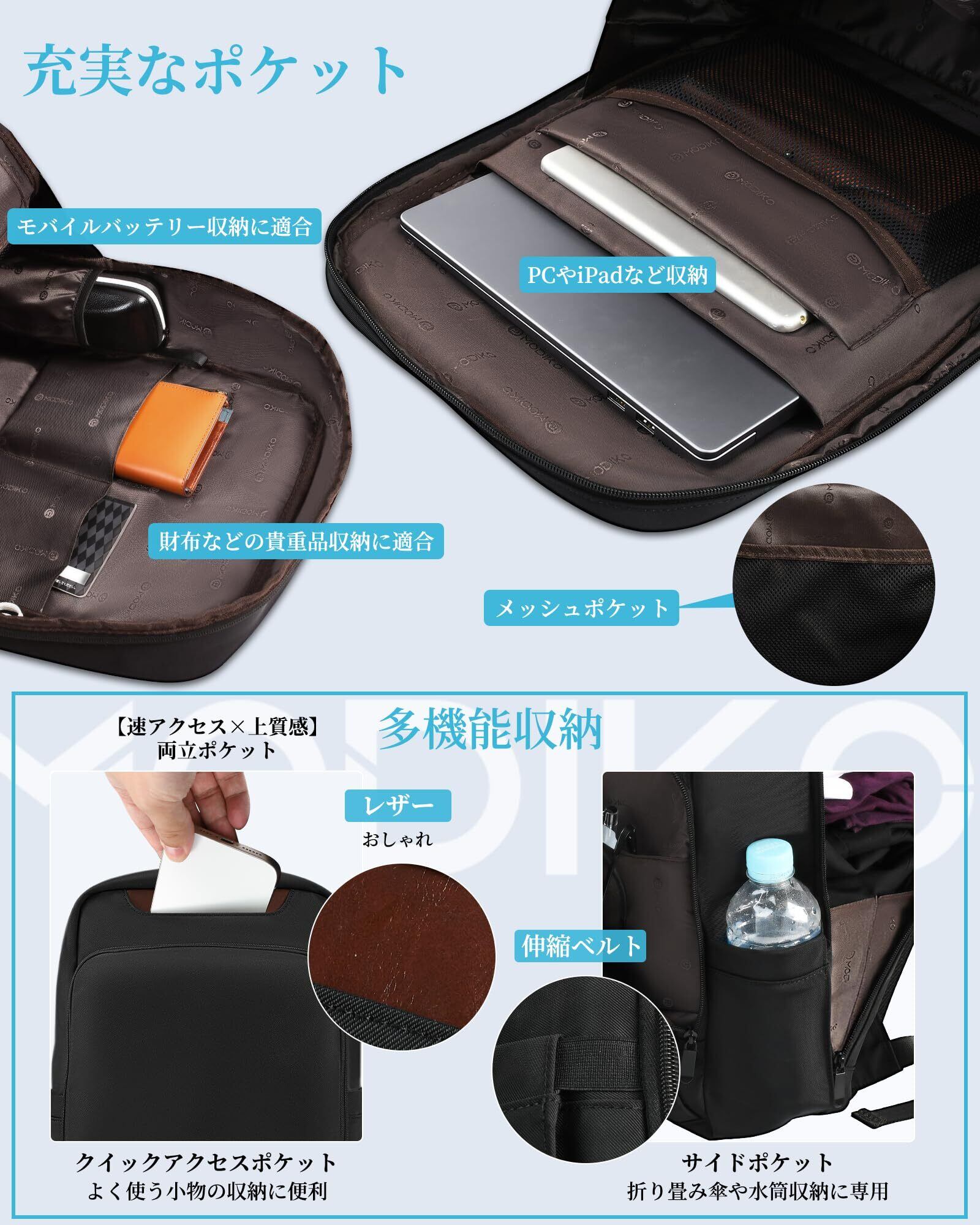 [Modiko] リュック メンズ ビジネスリュック 大容量 多機能 15.6インチPC リュックサック 軽量 撥水加工 バックパック 耐衝撃 ラップトップバック 通勤・通学・旅行・出張用 おしゃれ 人気
