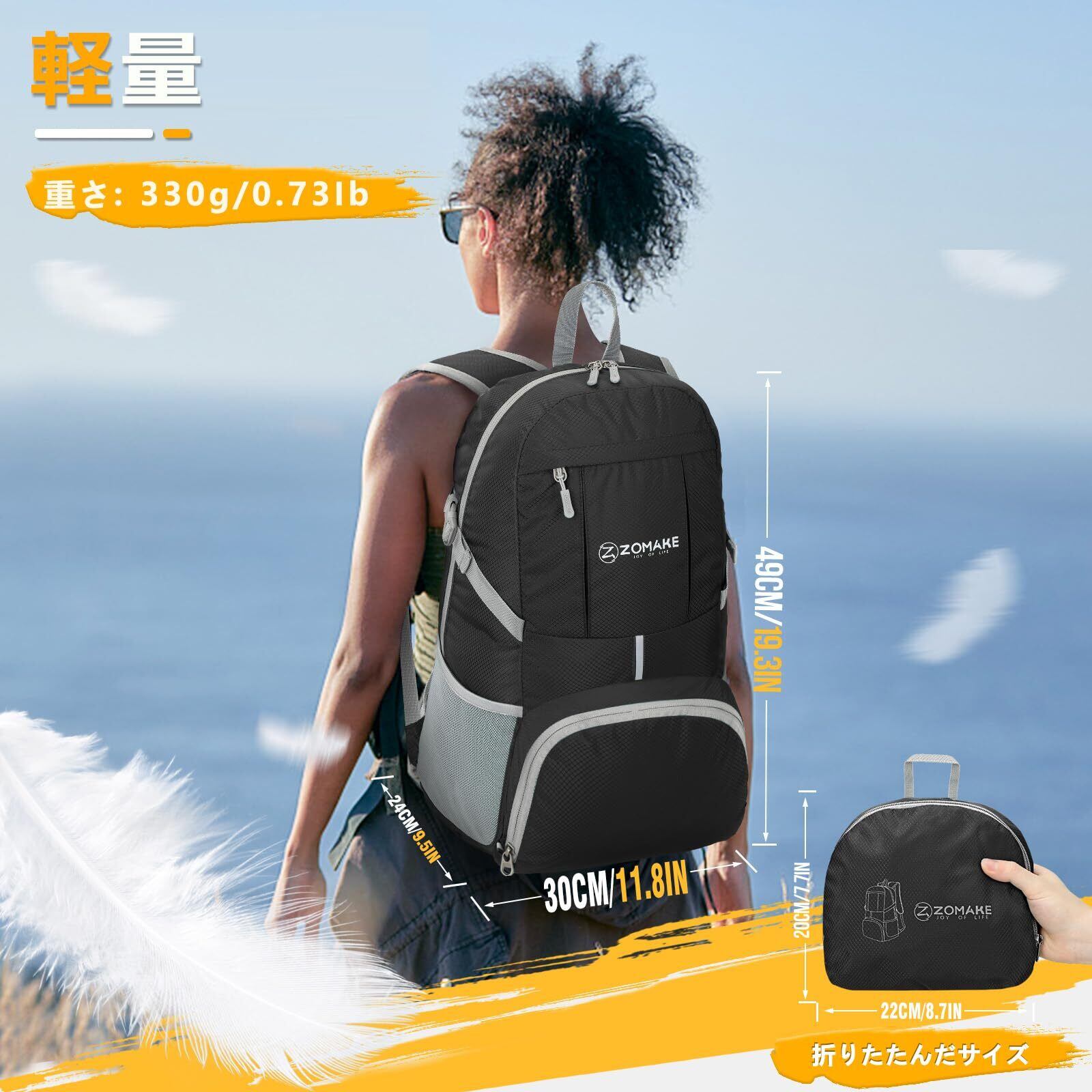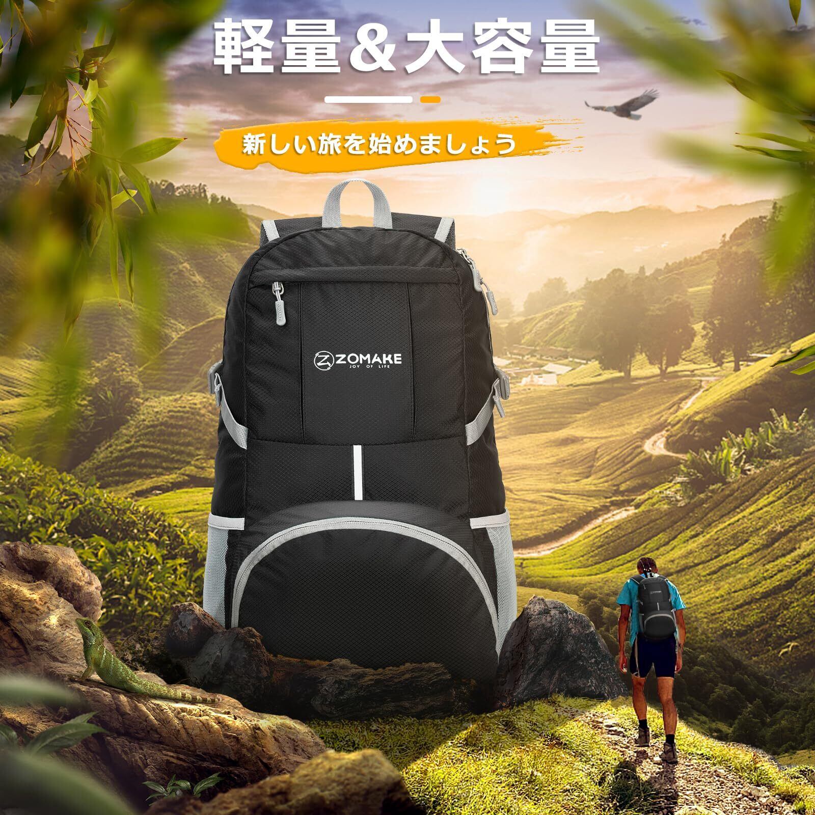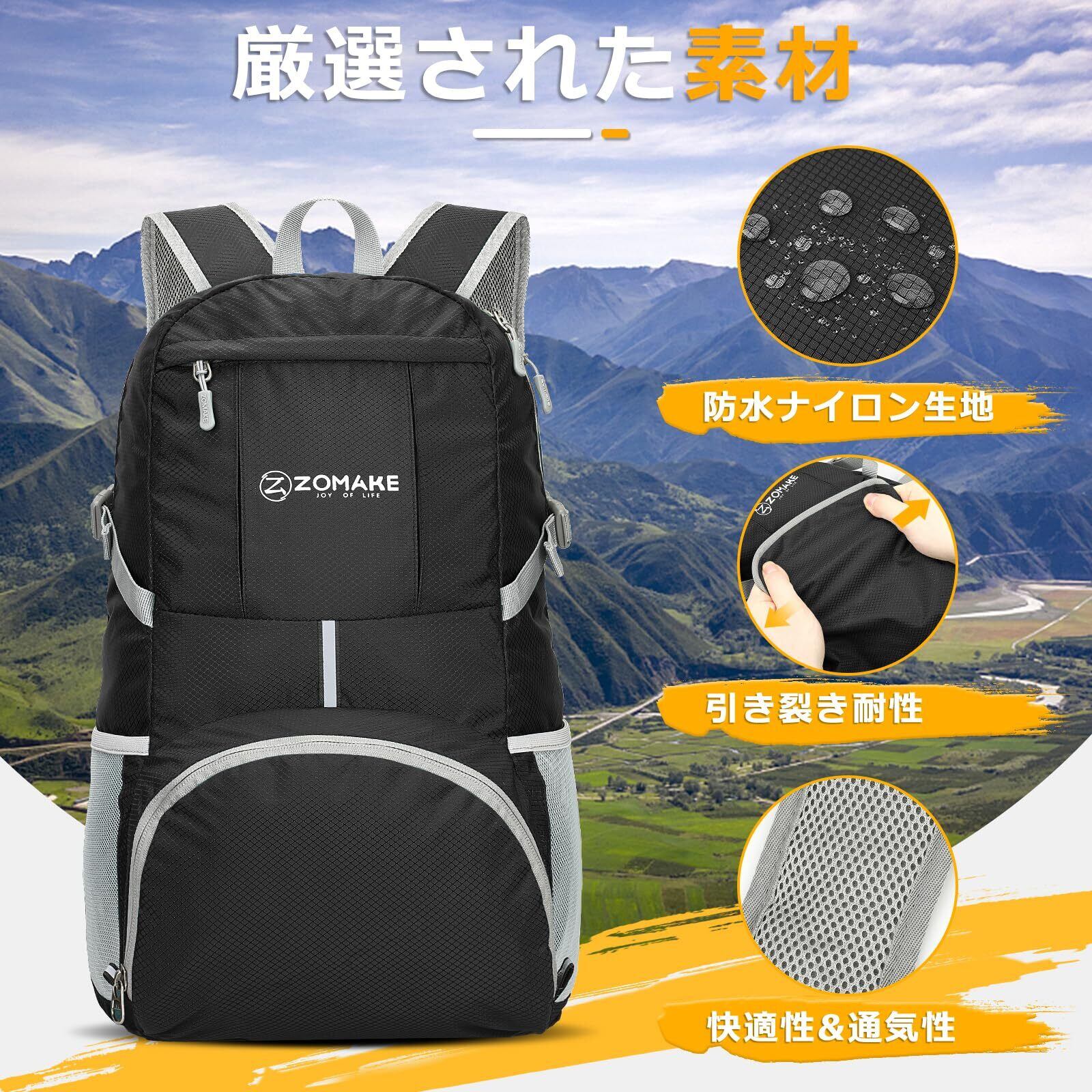[ZOMAKE] 折りたたみリュック 大容量 35L アウトドアバック チェストストラップ付き 防水 軽量 アタックザック デイパック 登山用 キャンプ 旅行 スポーツ 通学 通勤 メンズ レディース