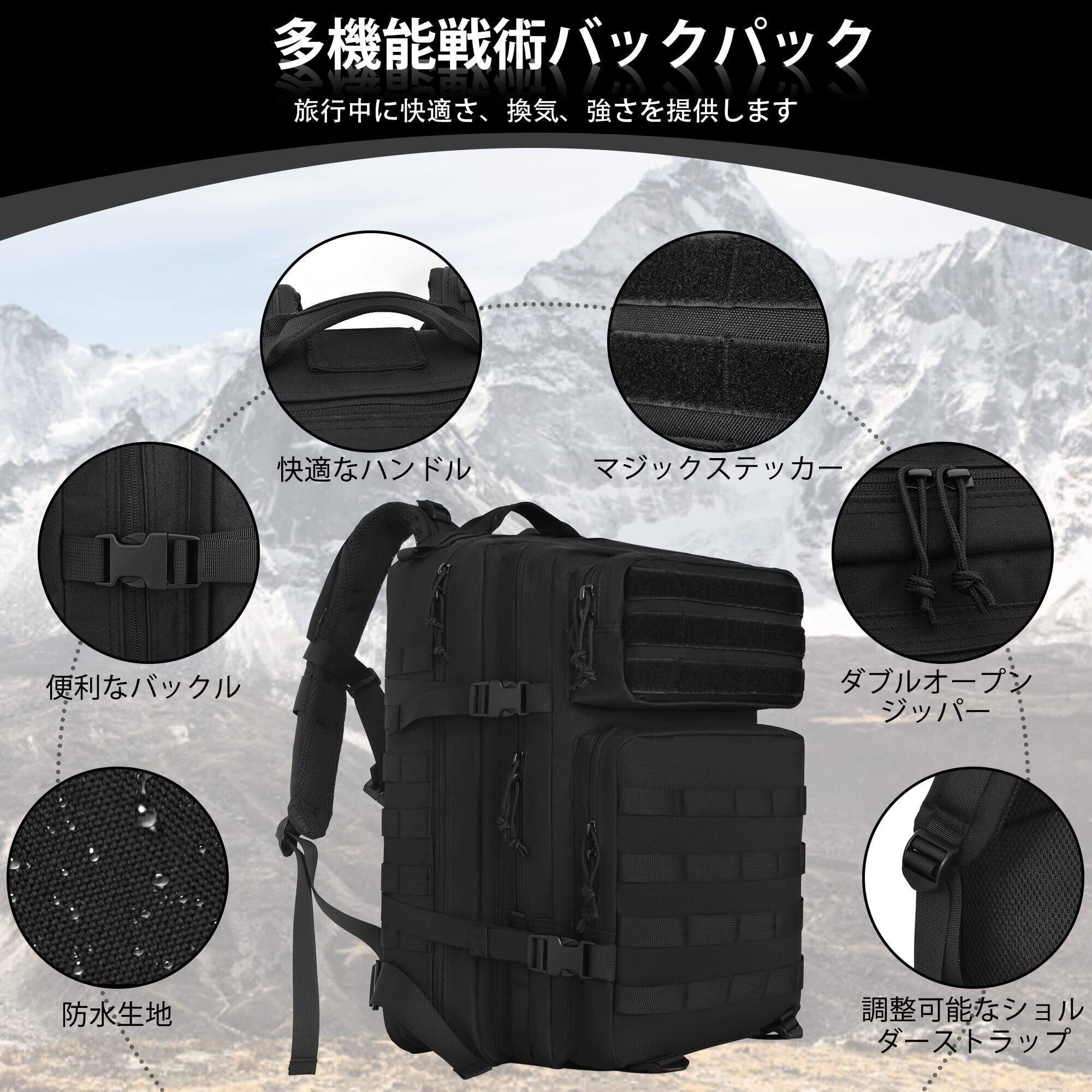 [NEGREW] ミリタリー リュック 登山リュック 35L/45L 大容量 防水 耐久性 タクティカル バックパック 釣り用 通勤用 キャンプ アウトドア アーミーアサルトパック 旅行 防災 3日間