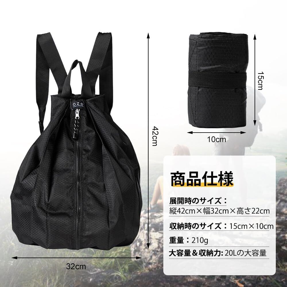 2.【大容量&収納力】このリュックは、20Lの大容量で日常的に必要なアイテムをしっかり収納できます。使わないときは折りたたんでコンパクトに収納でき、旅行やお買い物、アウトドアにも最適です。