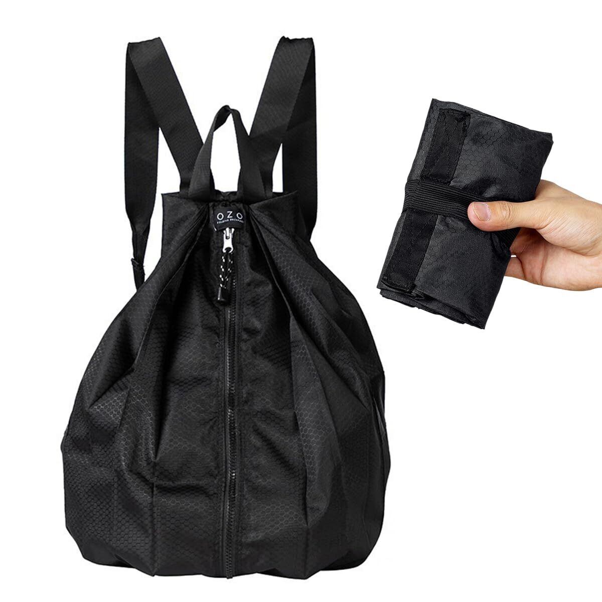 [UrbanPulse] 携帯リュック 折り畳みリュック パック アウト 大容量 軽量 防水 登山 旅行 スポーツ ショッピング 通学 通勤に最適 (ブラック)