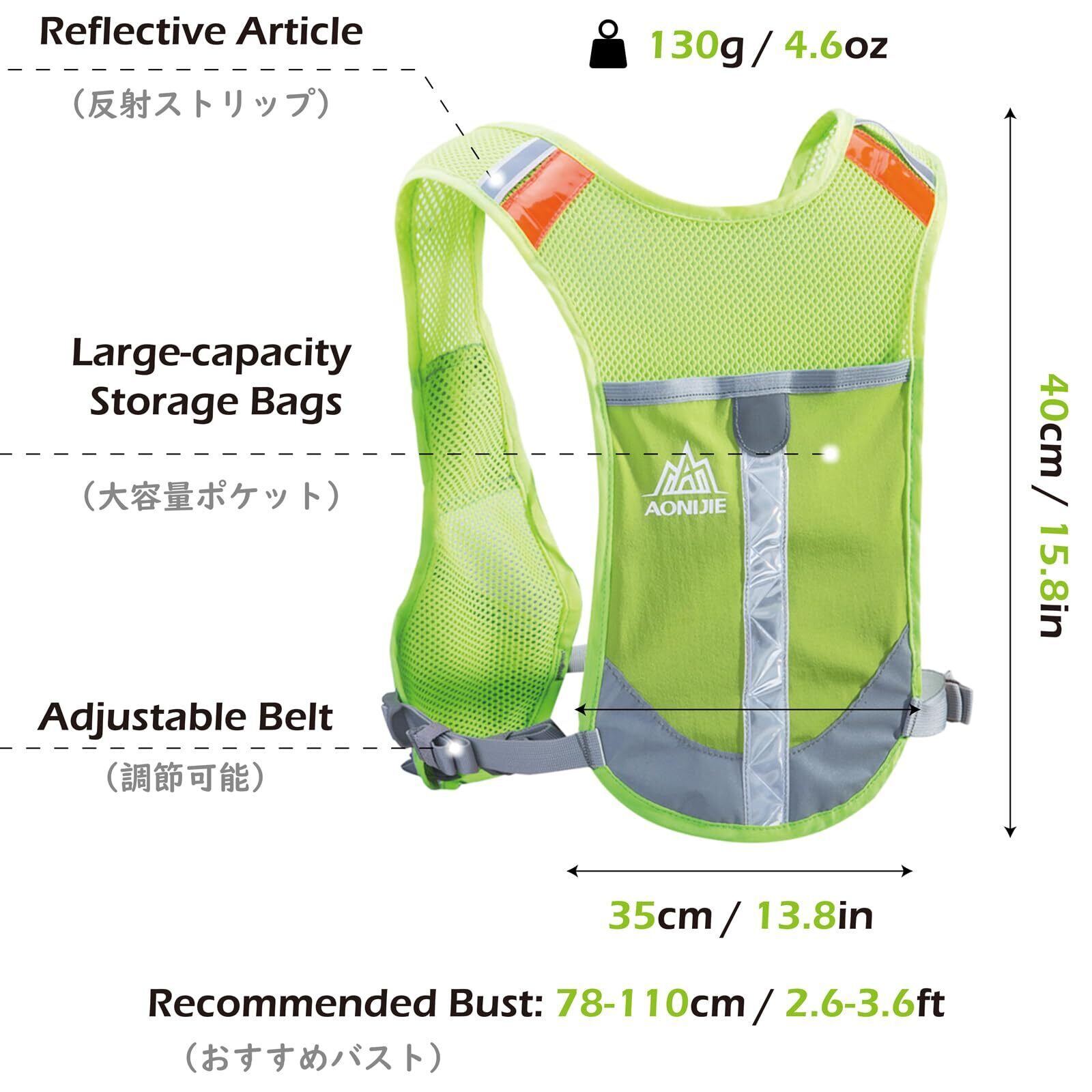 【万能ポケット】- 両サイドのポケットは、水筒やスマホを収納でき、ジッパー付きのポケットはお金やキー用、後のメインコンパートメントは着替えの服を入れます。 超軽量反射ベスト、収納性が高い。