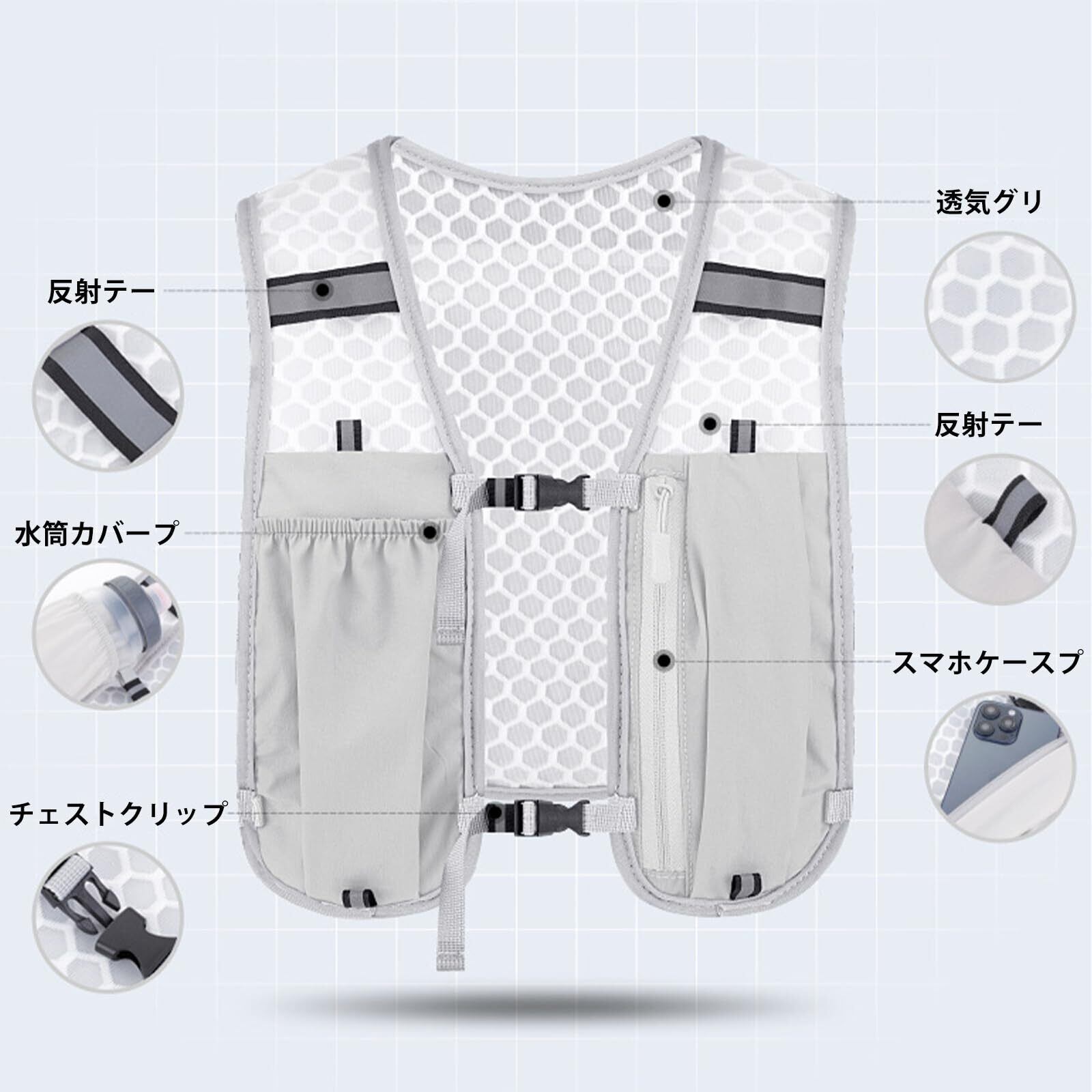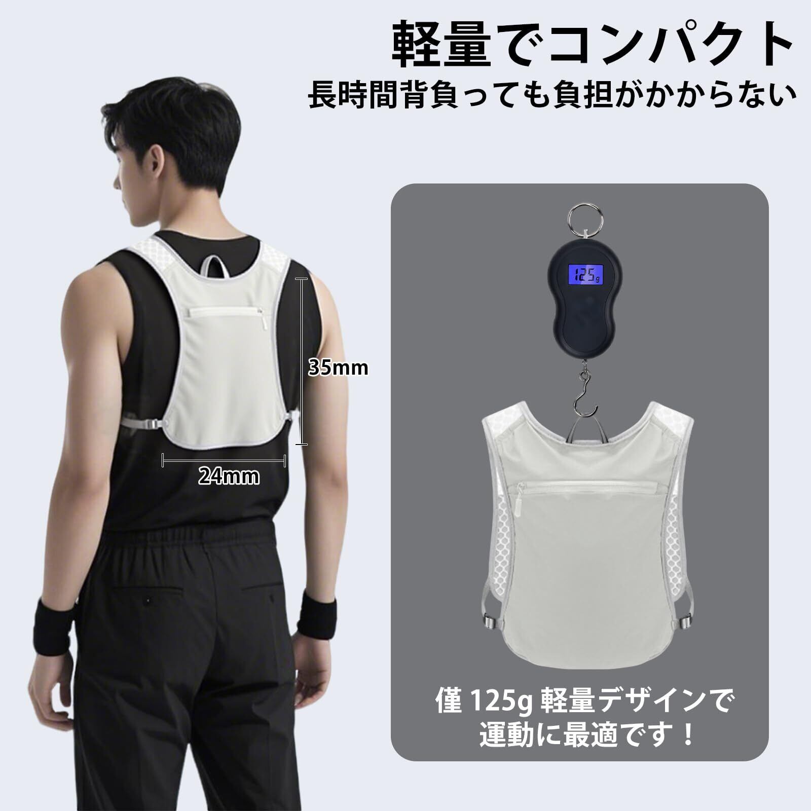 【軽量125gで疲れ知らず】 長時間のランニングで肩や背中が重く感じるのは煩わしいもの。このハイドレーションリュックは驚きの125g超軽量設計。まるで着ていることを忘れるような軽快さで、山岳トレイルから都市マラソンまで快適な走りを徹底サポートします。