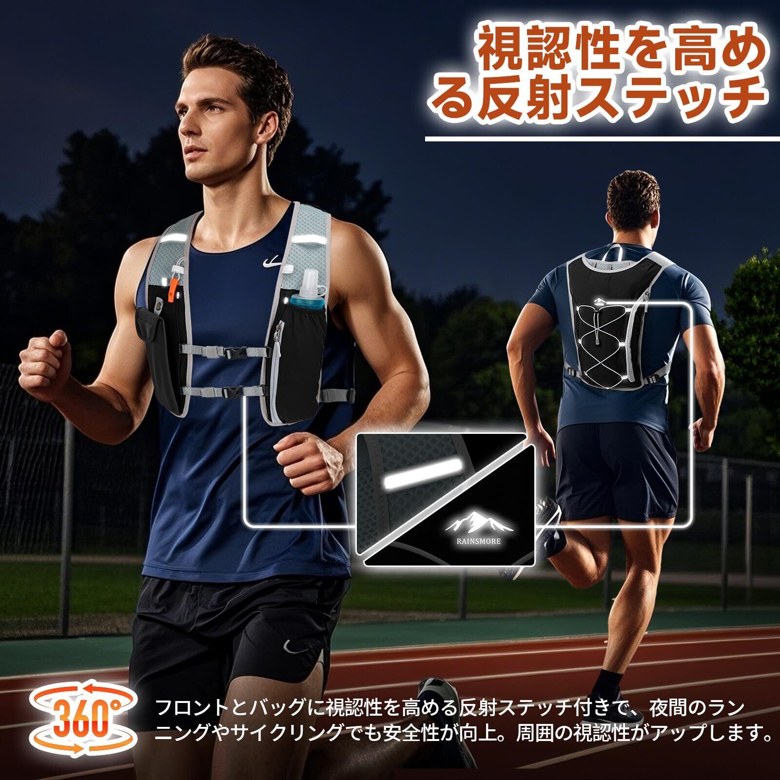 [RAINSMORE]ランニング リュック バッグ 超軽量 マラソン サイクリング リュック ランニングベスト 揺れない トレラン ザック ハイドレーション スポーツ 自転車 登山 防水 通気性 遠足 アウトドア ジョギング トレーニング ハイキングトレイル 釣り 反射ストラップ 男女兼用
