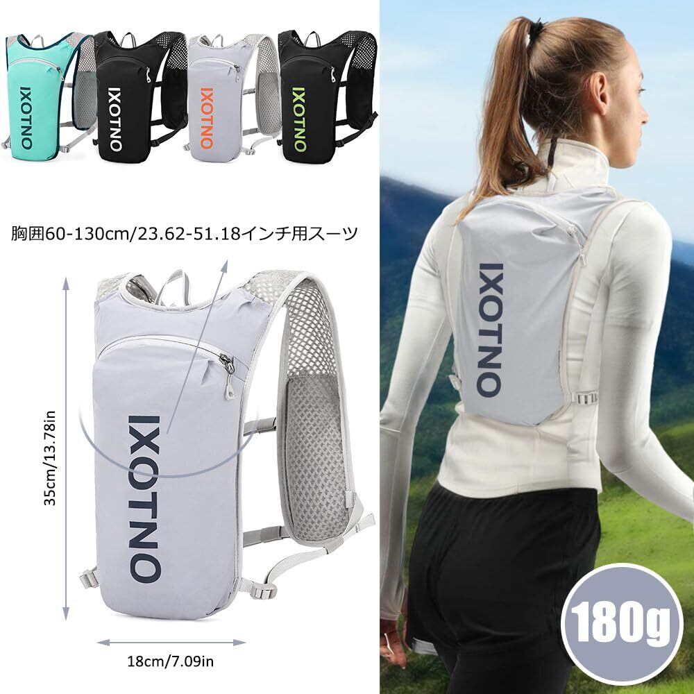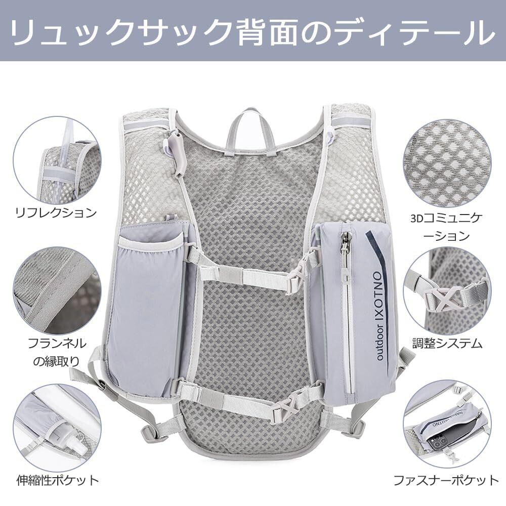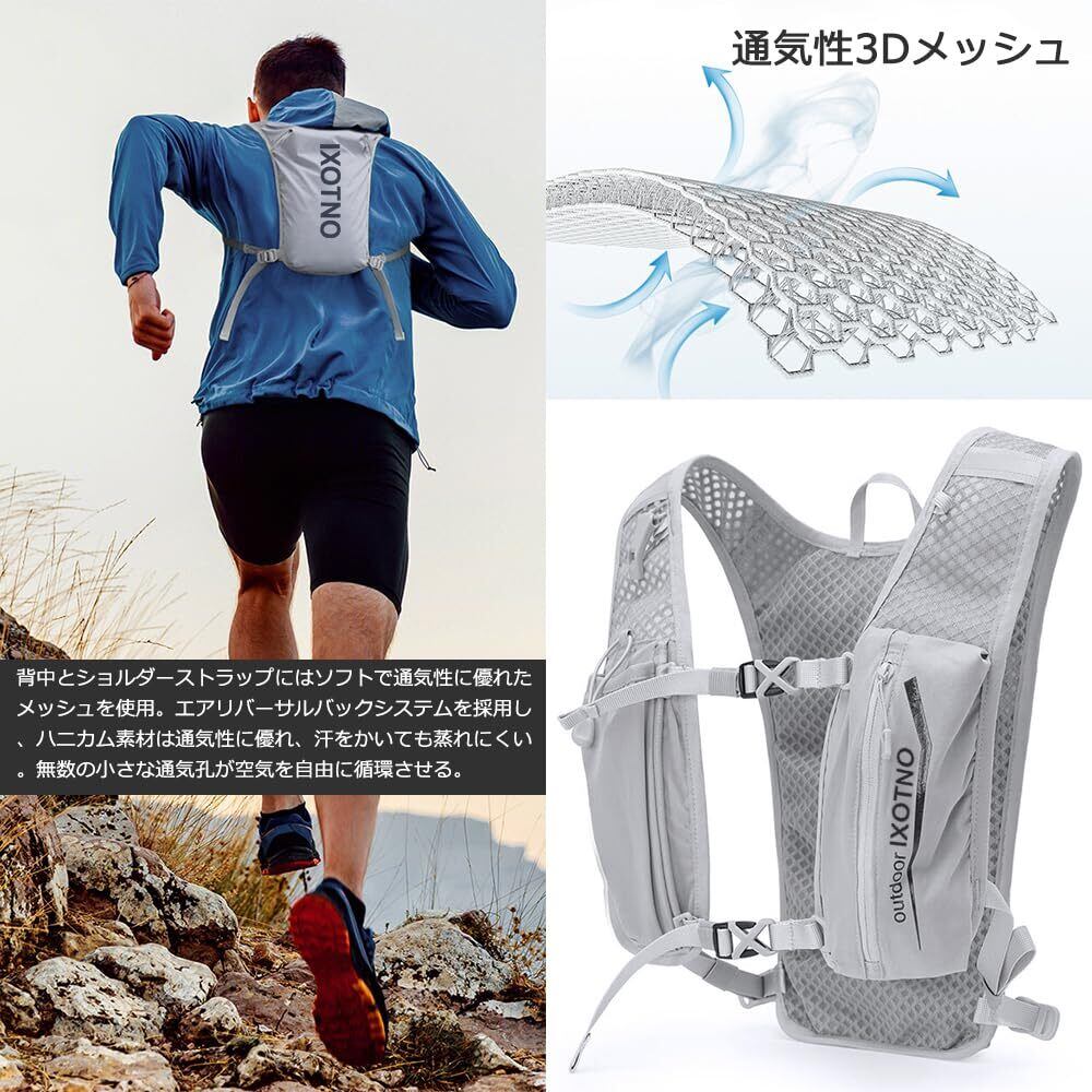 【通気性&高品質】 高品質の超軽量ナイロン製でランニング リュック マラソン、軽量、低抵抗、軽量、耐摩耗性に優れています。背面とショルダーストラップは柔らかく通気性のあるメッシュ、エアリバーサルバックシステム、ハニカム生地は通気性があり、汗をかきません。無数の小さな通気孔により、空気が自由に循環し、運動中に発生する熱と湿気を素早く除去します。 幅広のメッシュショルダーストラップは肩への負担を軽減し、アウトドアスポーツに最適です。
