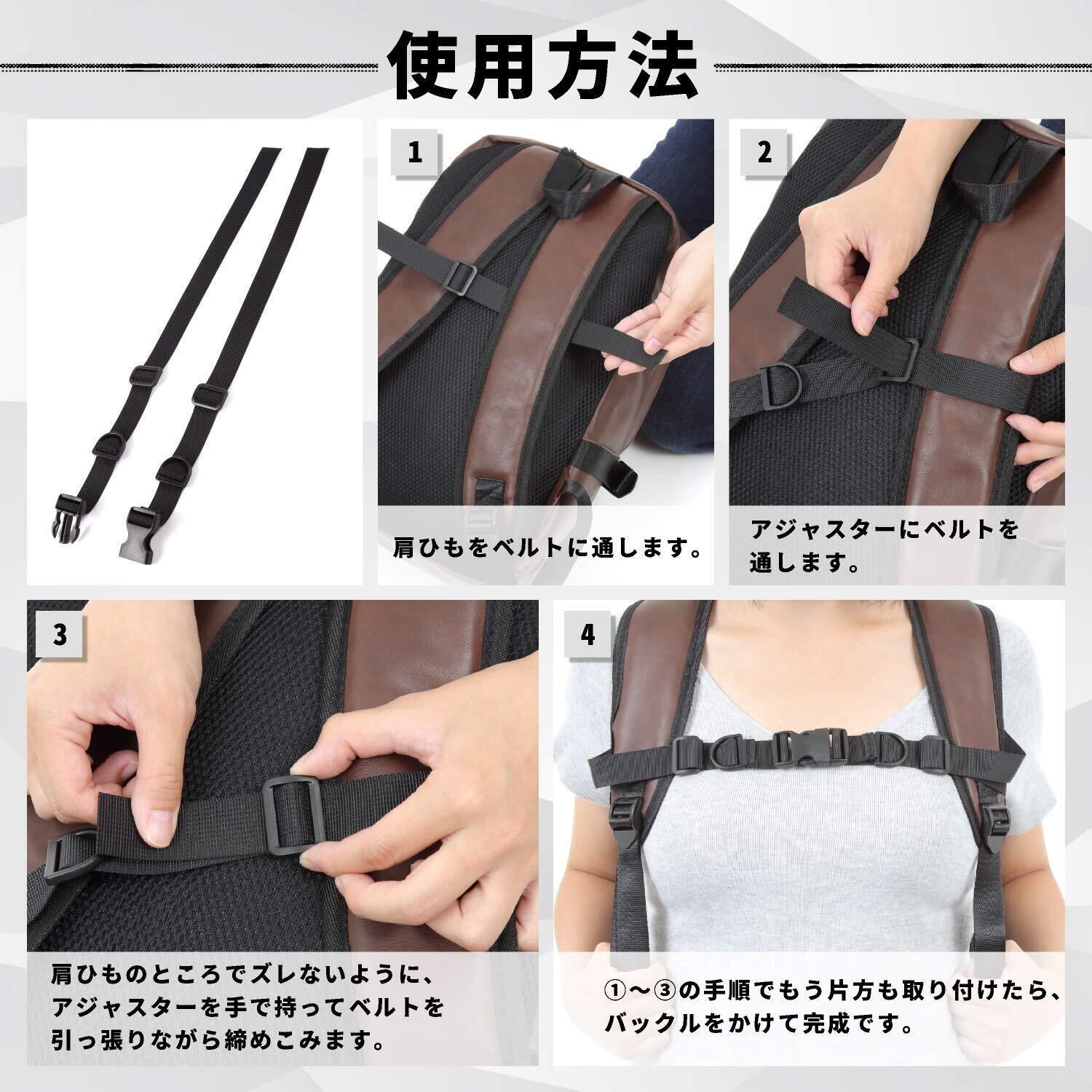 【 違和感なく・強い固定性で、上がり下がりにずることはありません。子供用のリュック、通勤用リュック、山登り用のバックパックなどに使用できます背負い疲れの原因は重さだけではない】背負ったリュックが身体に密着していないと、歩いた時にリュックが振り子のように前後左右に揺れてしまいます。これが歩く力の妨げになり、身体への負担となります。チェストストラップを取り付けることで、リュックを身体にピタッと密着させることができるので、明らかな負担の軽減を感じることができます。