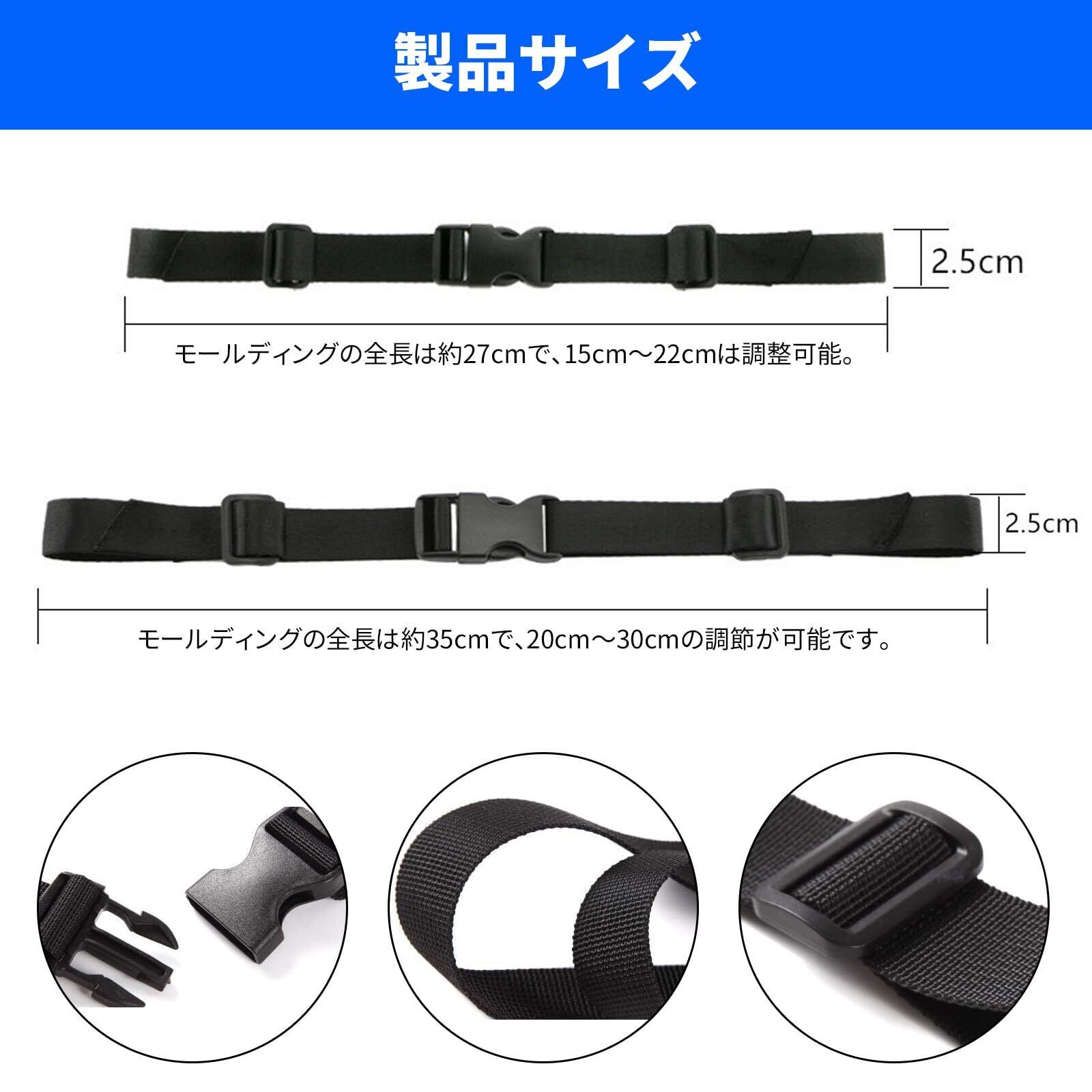 2.このリュックアタッチメントは、10.16cm〜69.85cmの範囲で自由に調整可能。自分のニーズやバックパックのサイズに合わせて、最適な位置を簡単に設定できます。さらに、最短で9.8インチ(約25cm)に調整でき、柔軟なカスタマイズが可能です。どんなリュックにもぴったりフィットし、快適な使用感を提供します。
