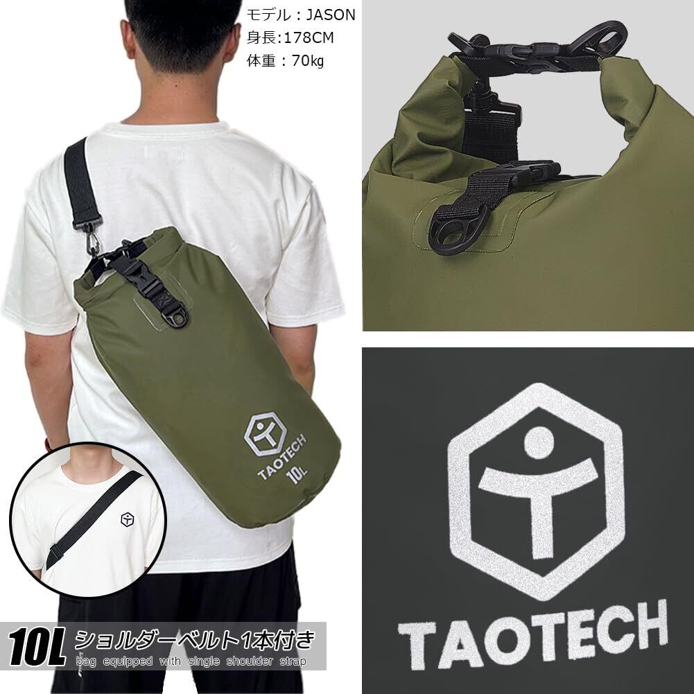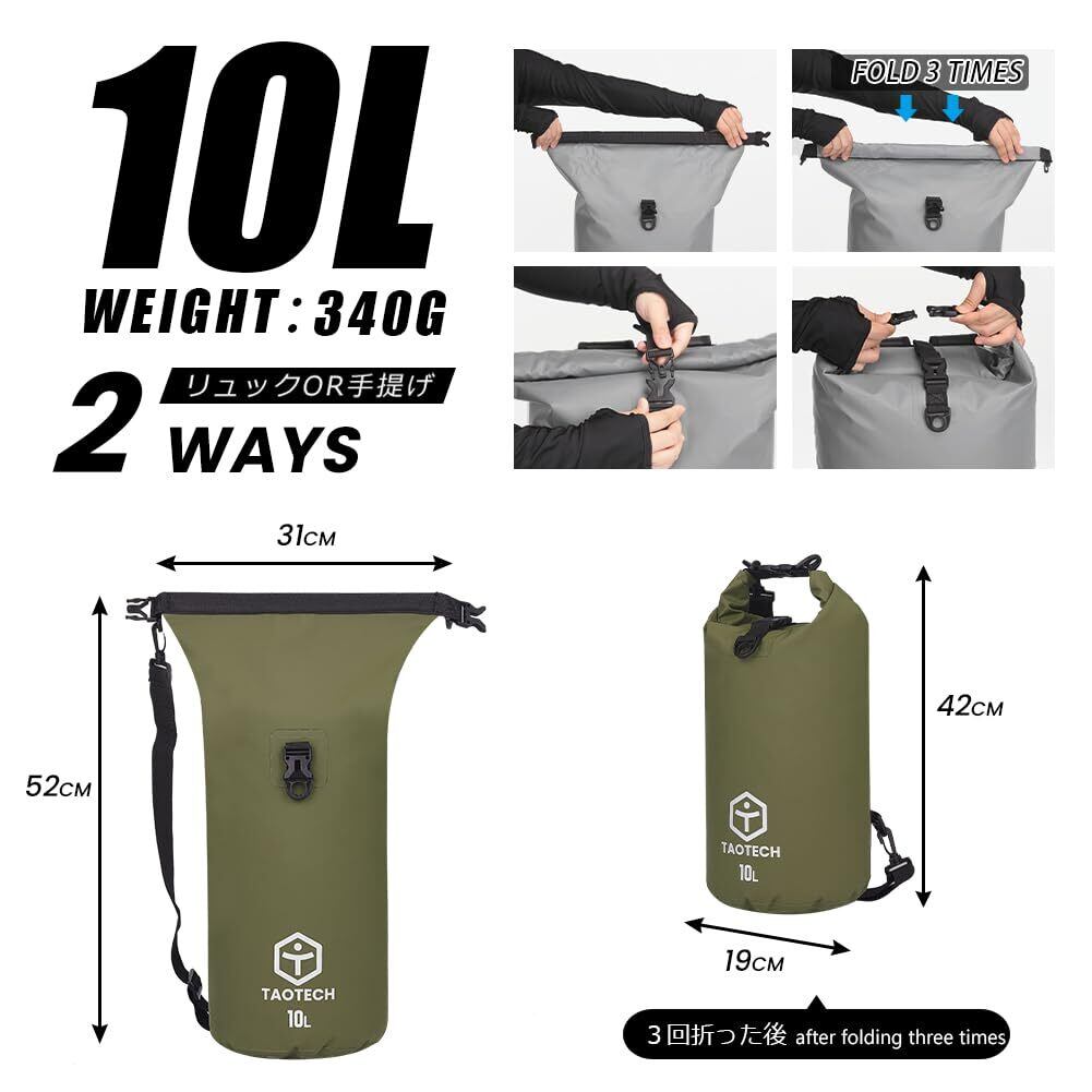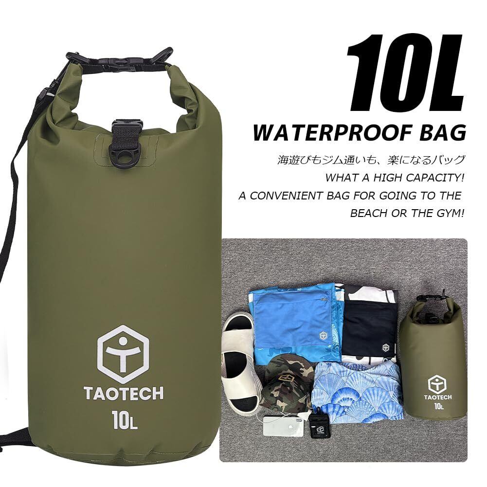 TaoTech 筒型 防水バッグ ドライバッグ 防水 ドラム型 スポーツバッグ アウトドア 海 プール 川遊び 釣り スノーボード 男女兼用(グレー, 10L)