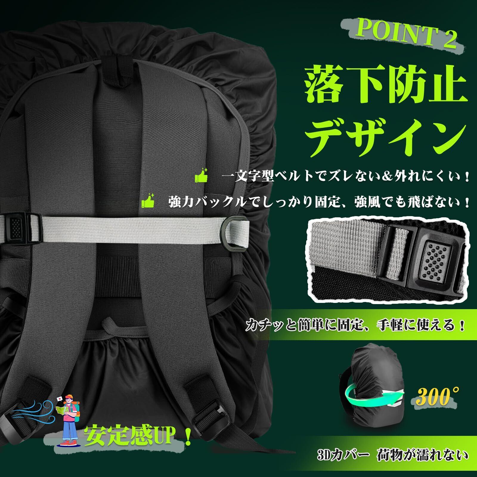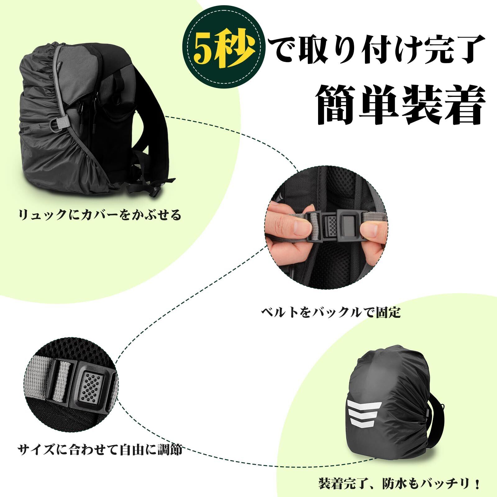 [BESPOTCL] リュックカバー 防水 ザックカバー 完全防水 軽量 クロスバックル 反射材 リュック レインカバー 落下防止 収納袋付き 通勤 通学 登山 自転車