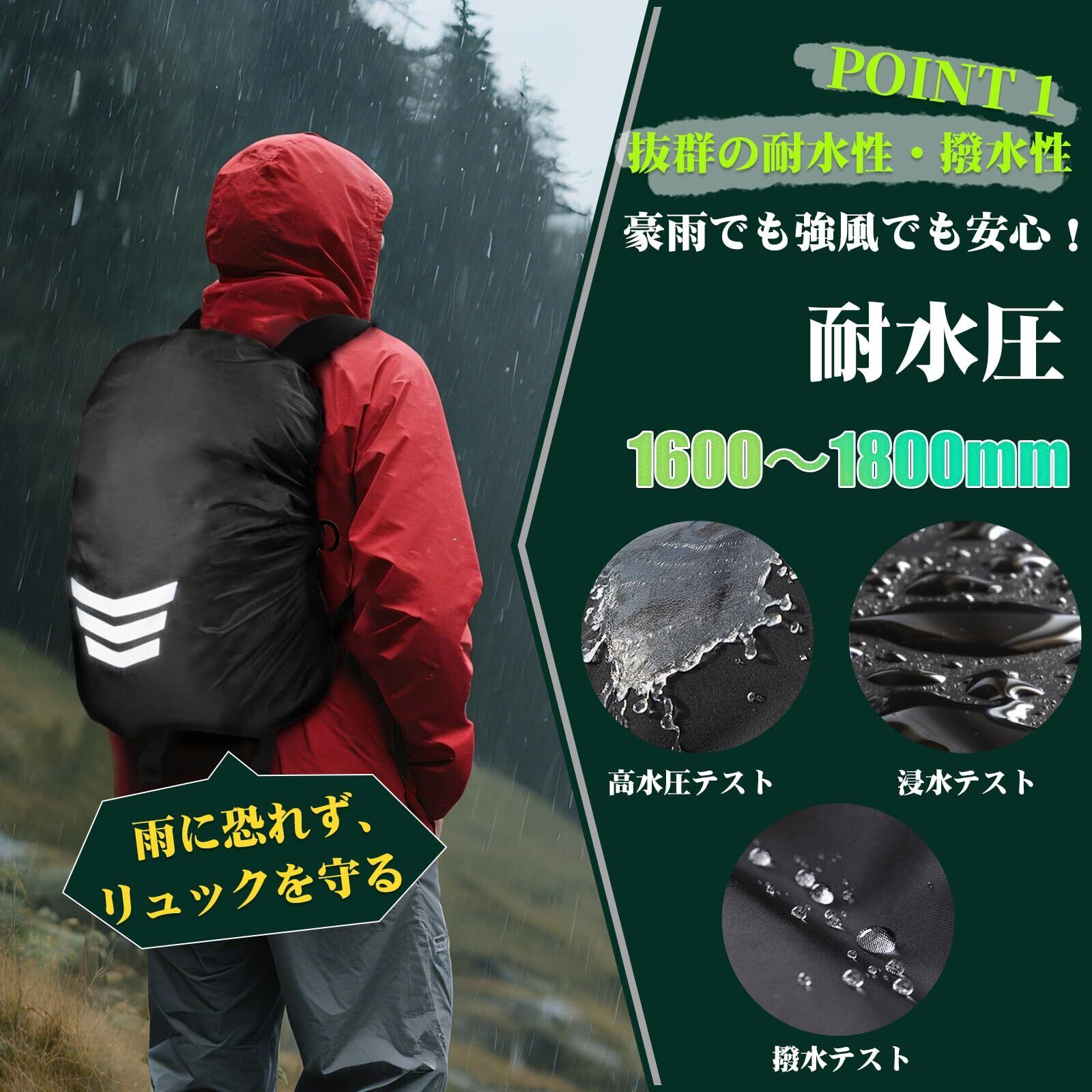 【超防水・撥水でリュックを徹底保護】高密度210Tナイロンと銀色PUコーティングを採用したリュックレインカバー。耐水圧3500mmで豪雨や強風でも中身をしっかり守り、UVカット効果で貴重品を保護。通学の書本、登山の電子機器、剣道防具背包を濡れから守り、どんな天気でも安心して冒険を楽しめる