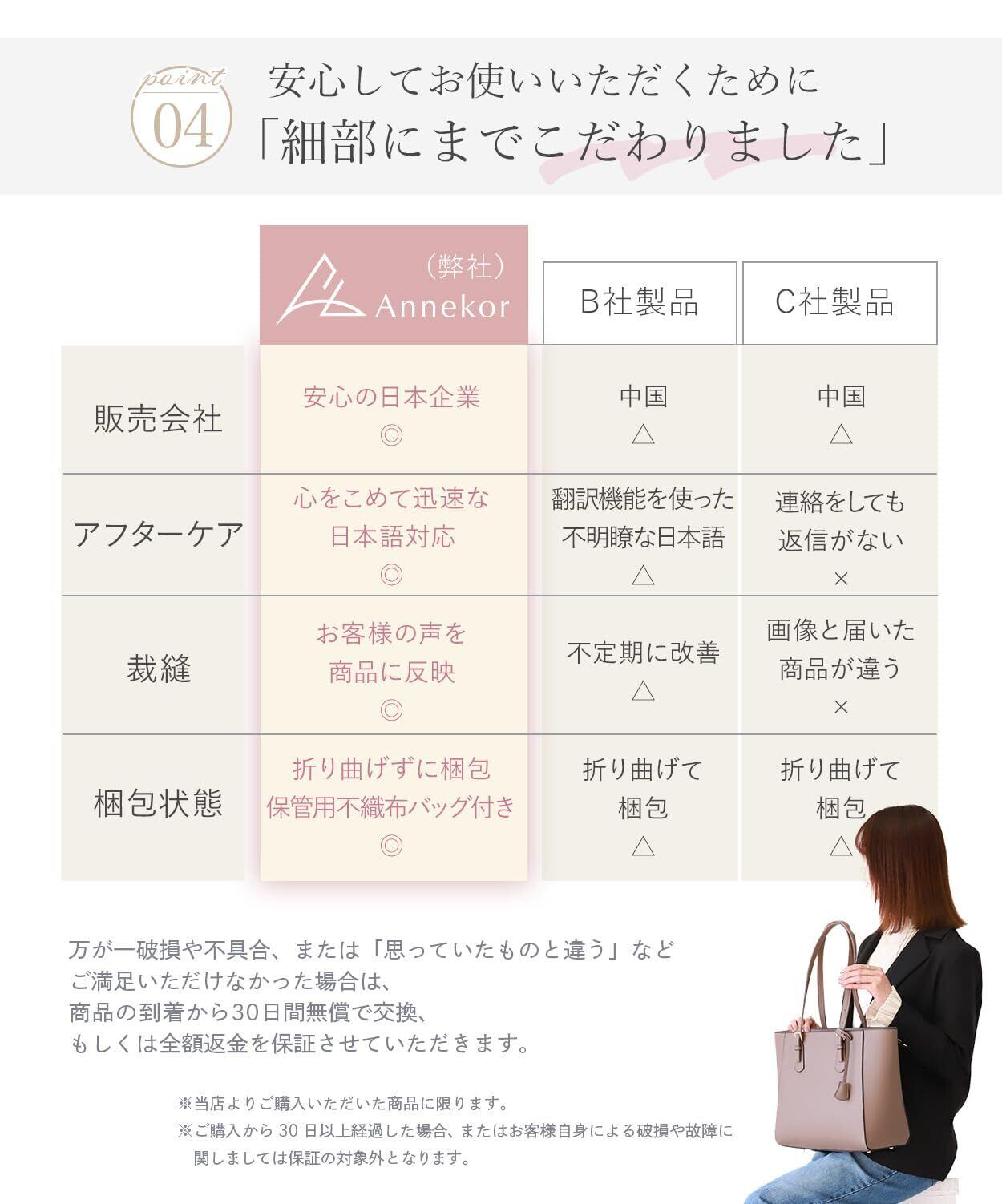 【安心の日本企業対応|類似品にご注意ください】 見た目が似ていても、品質やアフター対応は大きく異なります。Annekorでは日本企業として、品質管理とサポート体制を徹底。万が一の際も、日本人スタッフが迅速かつ丁寧に対応いたします。