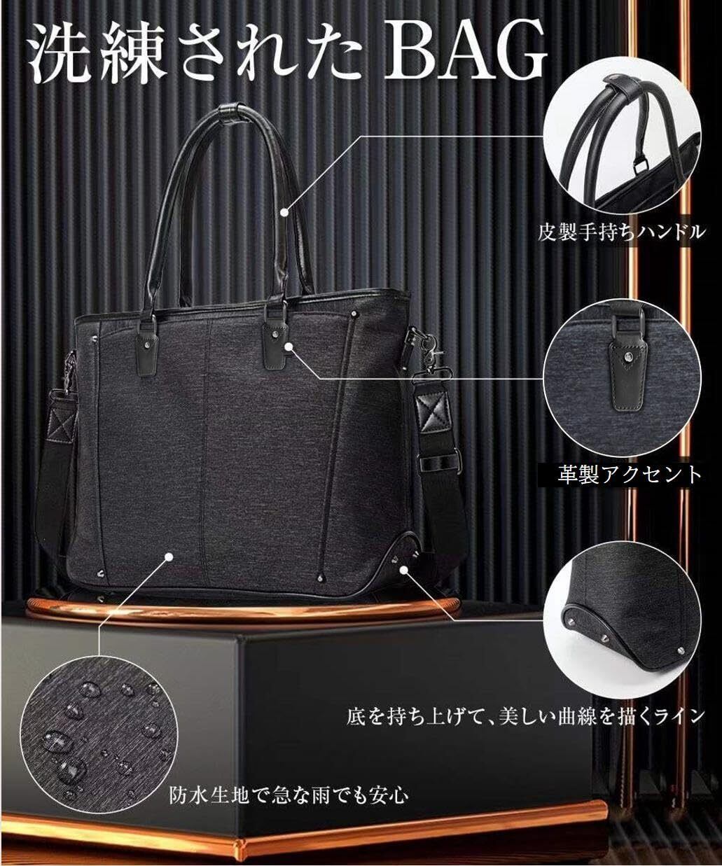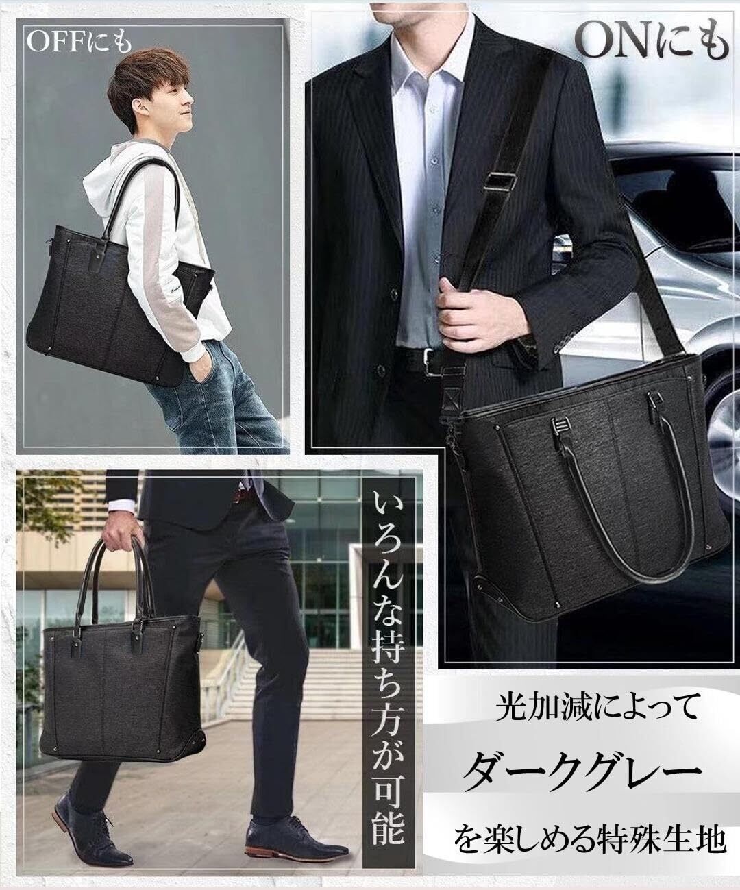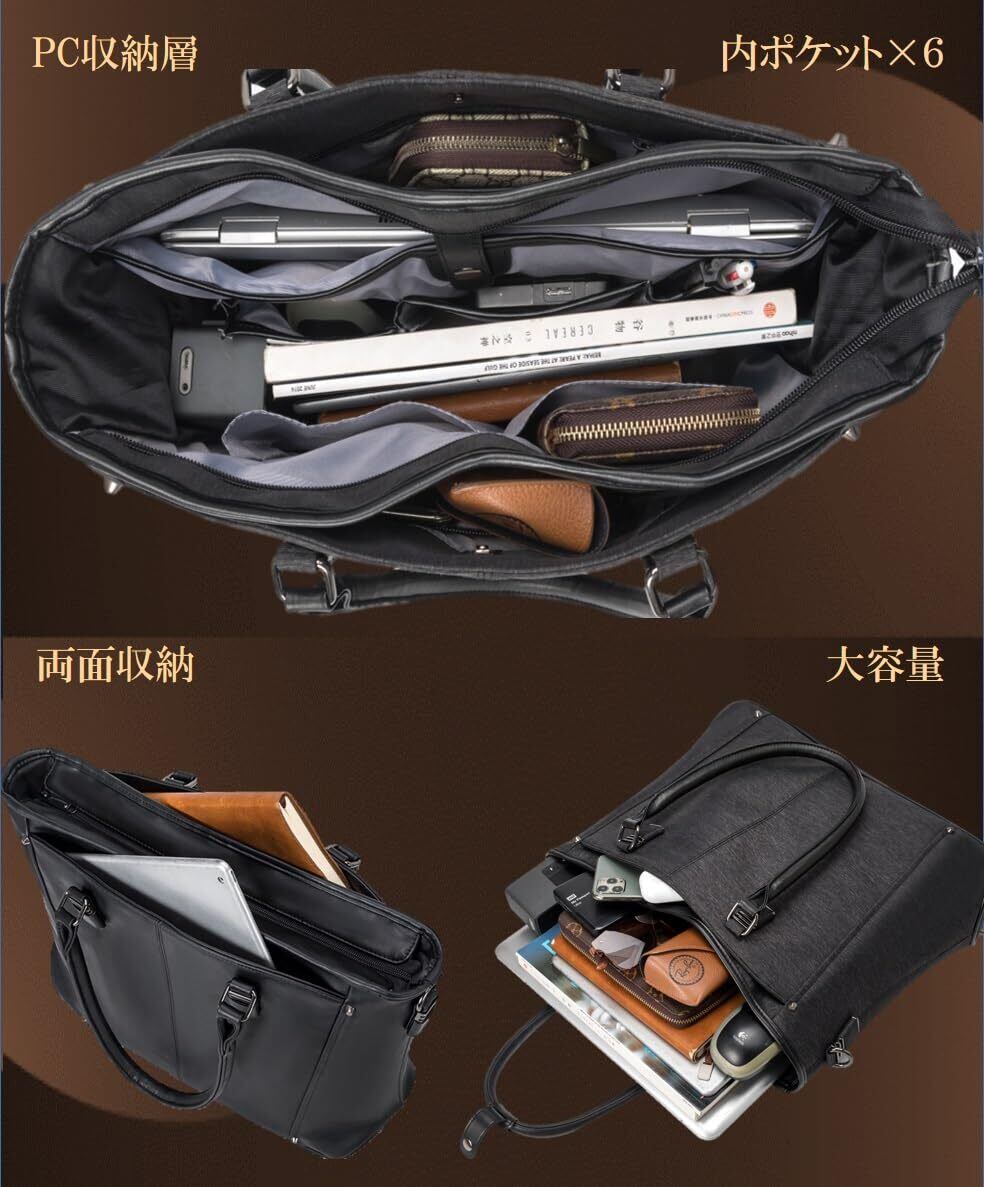 [ABIBA] ビジネスバッグ トートバッグ メンズ ビジネストートバッグ ショルダーバッグ ハンドバッグ 大容量 多機能 自立 リクルート 就活 ビジネス 通勤 通学 PC 出張 防水 撥水 (モクブラック)