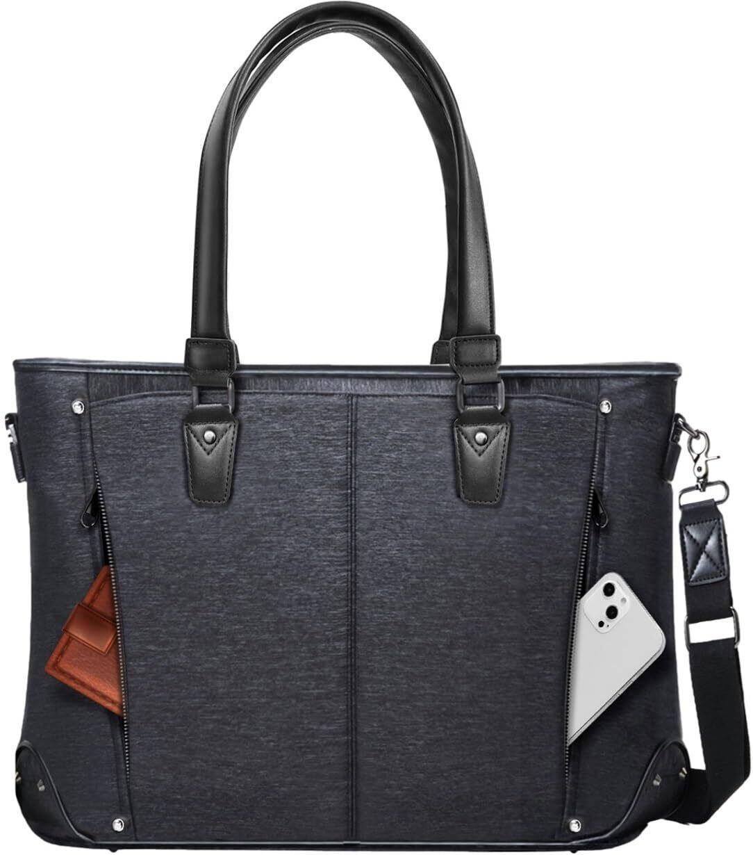 【数量限定】[ABIBA] ビジネスバッグ トートバッグ メンズ ビジネストートバッグ ショルダーバッグ ハンドバッグ 大容量 多機能 自立 リクルート 就活 ビジネス 通勤 通学 PC 出張 防水 撥水 (モクブラック) | 無意味ステッカー