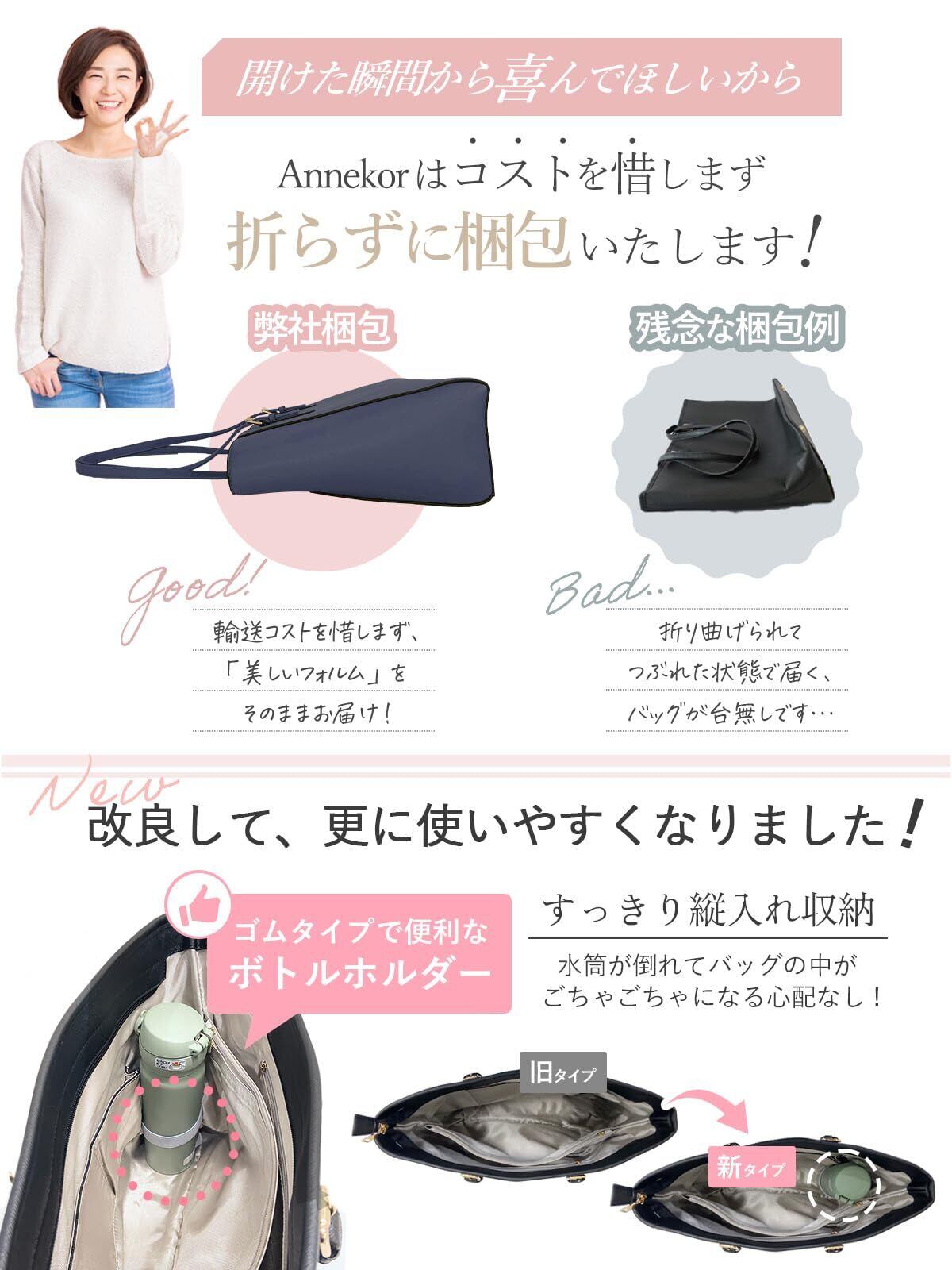 【折り目なしで美しくお届け|特別梱包対応】 多くのバッグが輸送時に折りたたまれて潰れて届く中、Annekorでは折らずに丁寧に梱包・発送。型崩れのない“美フォルム”のままお届けするため、輸送コストをかけてでも品質を守る姿勢を貫いています。
