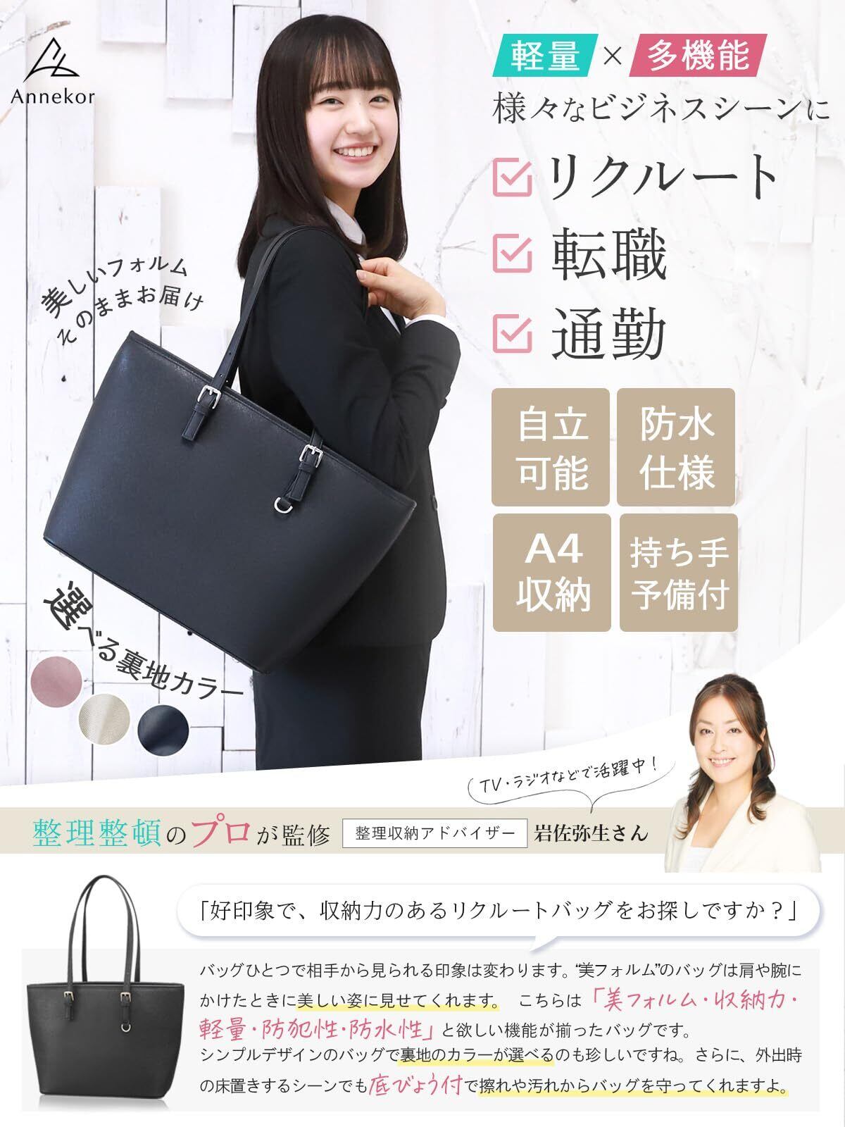 [アンコール] ビジネスバッグ 就活 リクルート 【美フォルム梱包 収納のプロ監修】 入学式 A4 バッグ レディース 面接マナーブック付 通勤バッグ 選べる裏地色 トートバッグ 自立 かばん 大容量 面接