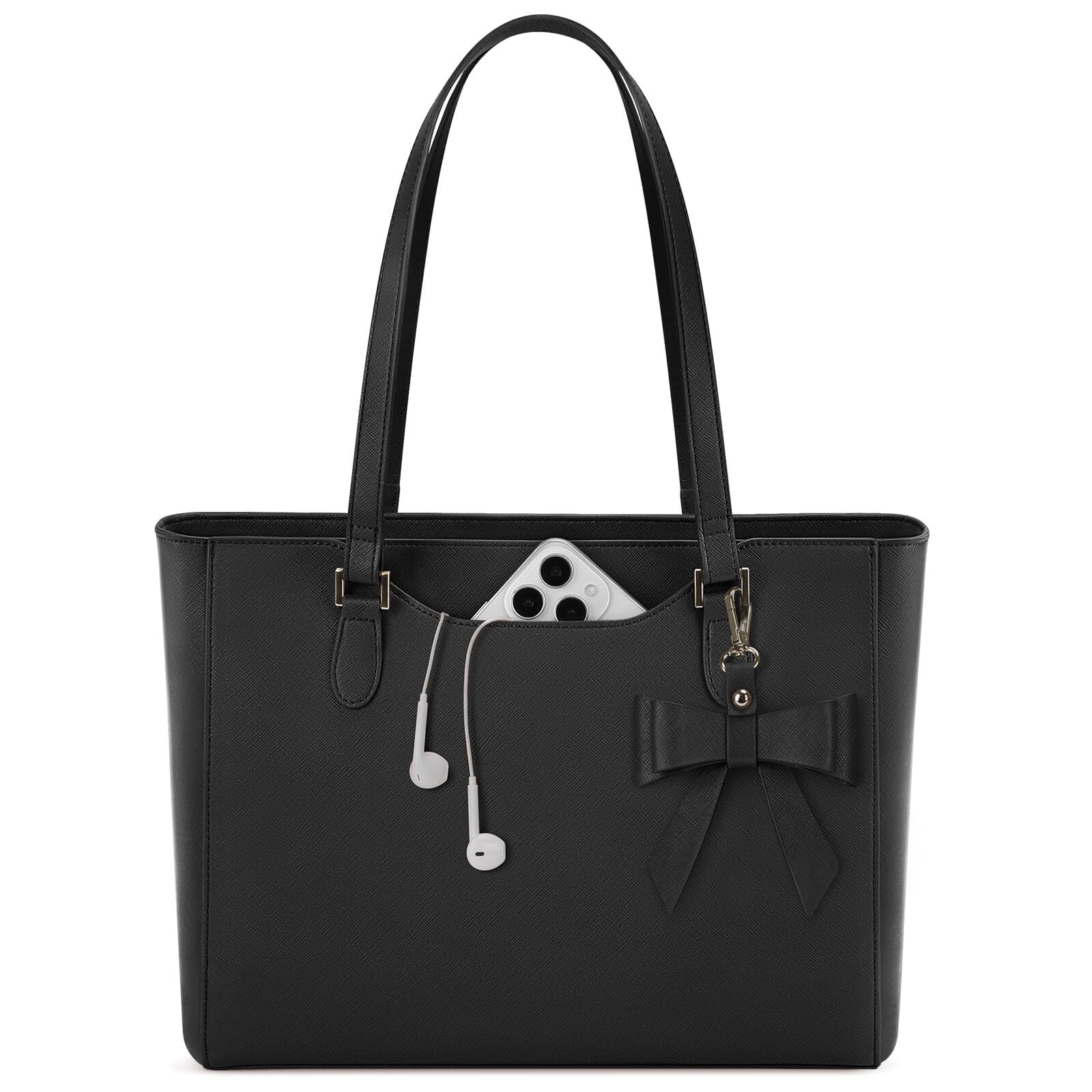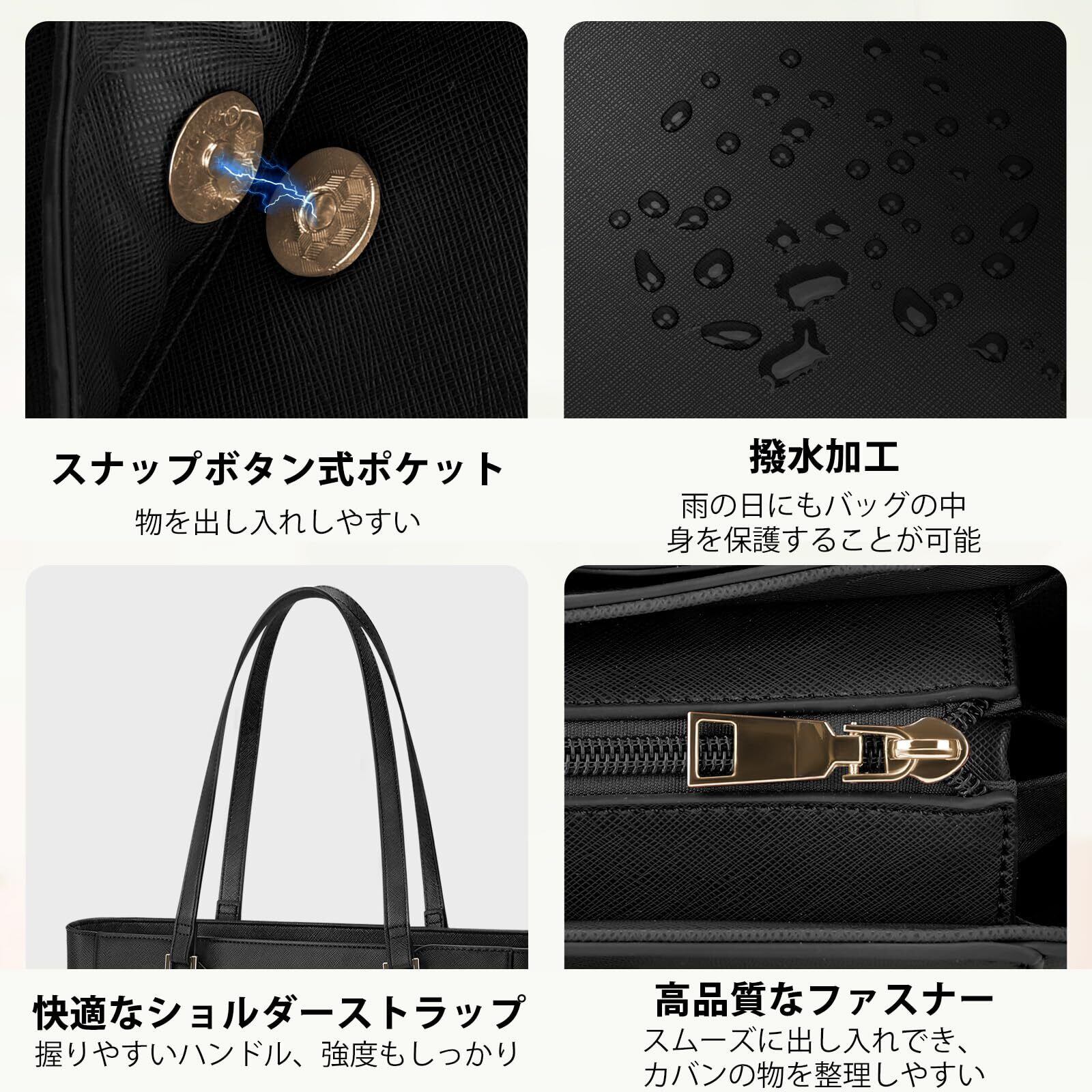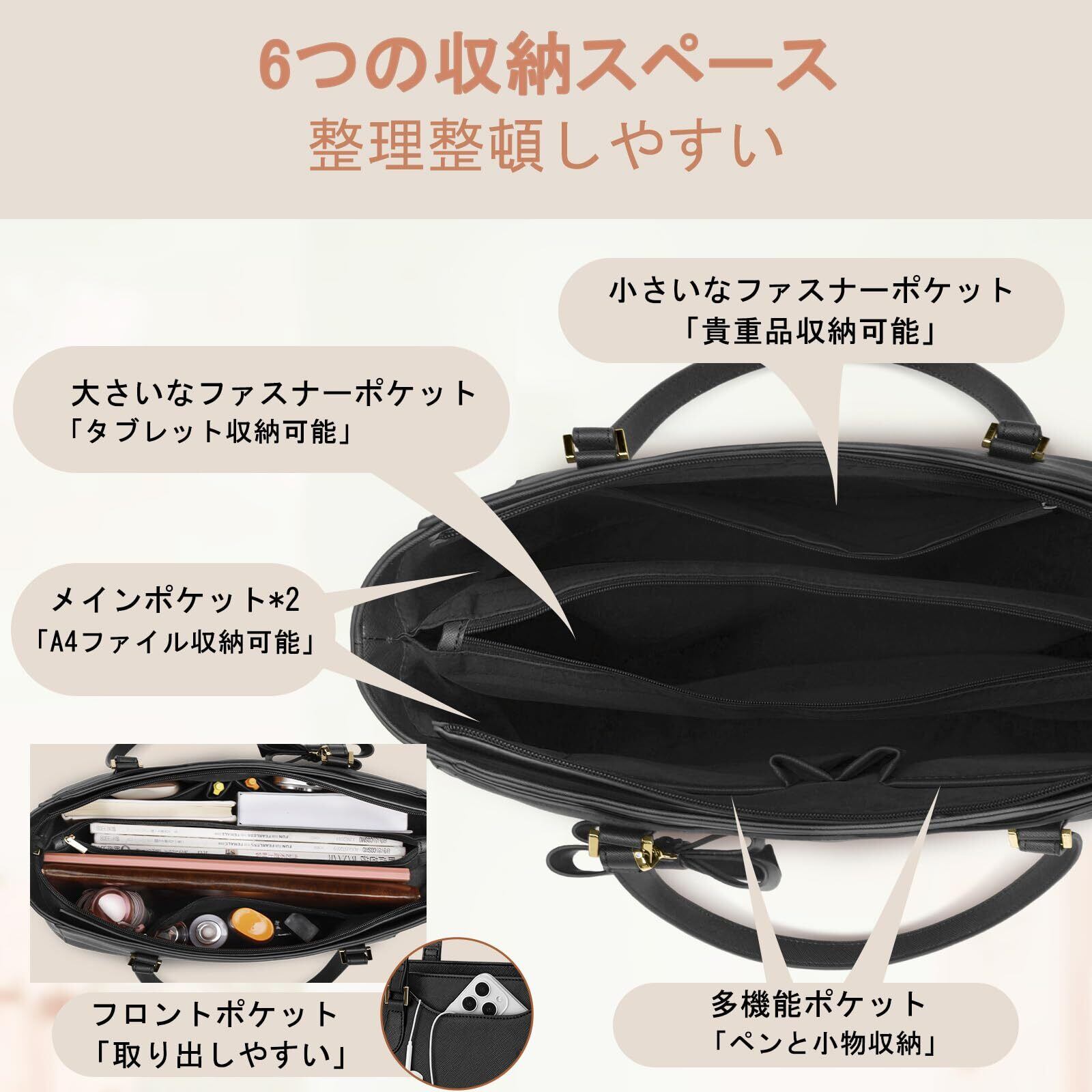 【在庫セール】[KTMOUW] ビジネスバッグ レディース 大容量 リクルートバッグ A4 トートバッグ 通勤バッグ 撥水加工 自立 PUレザー 就活バッグ レディースバッグ カバン 鞄 通学 就職 面接 黒 | 無意味ステッカー