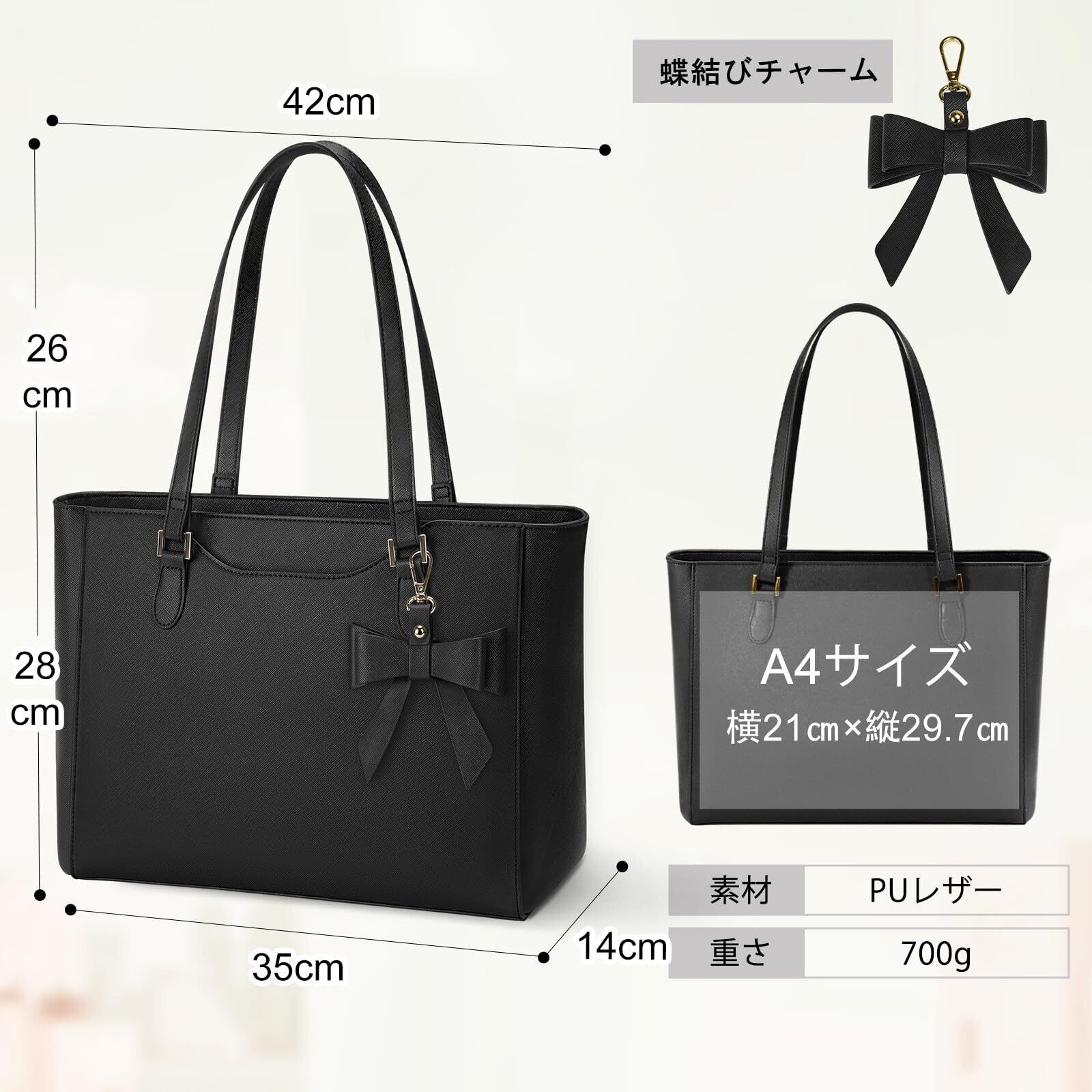 確かな機能性と鮮やかなデザイン性:ビジネスバッグの底鋲付きで汚れにくく、しっかり自立し、社外への訪問や面接時などで床に置く際も倒れる心配がなく安心です。なお、絶妙でファッショナブルな蝶結びチャーム付き。取り外し可能なので、別のお好きなチャームを付けてもGOOD!!