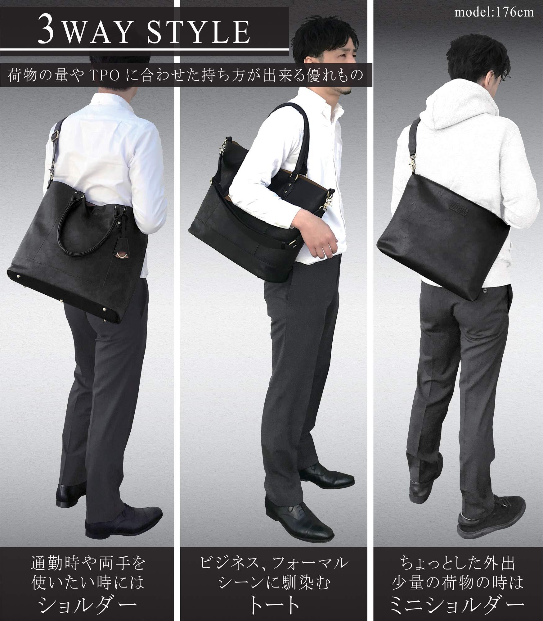 【大容量】大きめサイズで1泊2日の旅行や出張にもご使用頂け、A4ファイルやノートPC、タブレットなどを収納しても余裕のサイズ感です。【デザイン】落ち着きのあるデザインでビジネススタイルからカジュアルな装いまで幅広いスタイルでコーディネイトして頂けます。