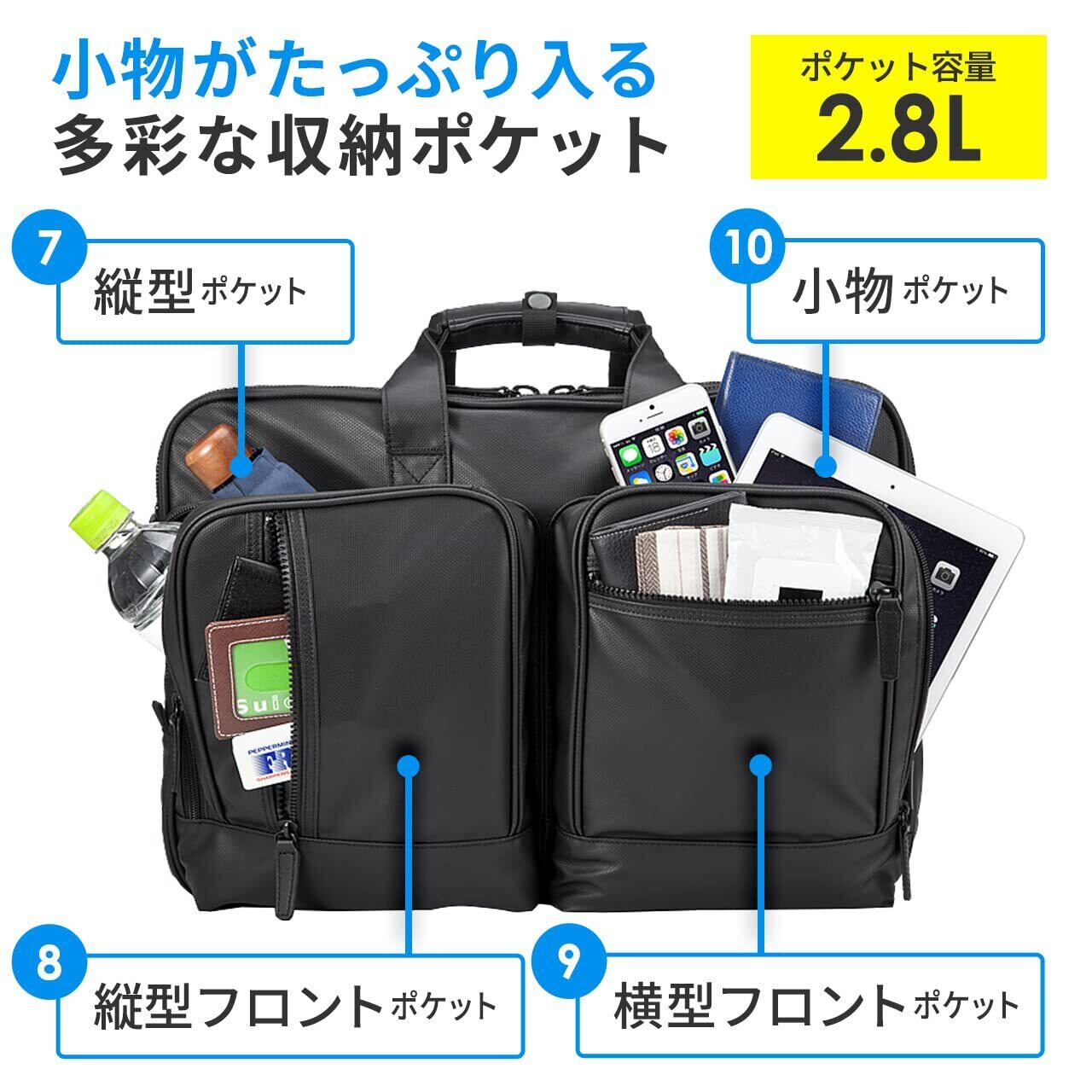[サンワダイレクト] ビジネスバッグ 3WAY 耐水 大容量 31.8L マチ拡張 出張 2~3泊 15.6型ノートPC対応 1個 200-BAG065WP