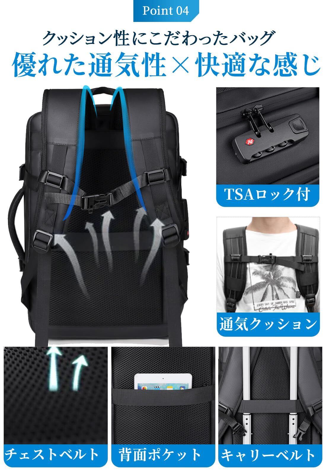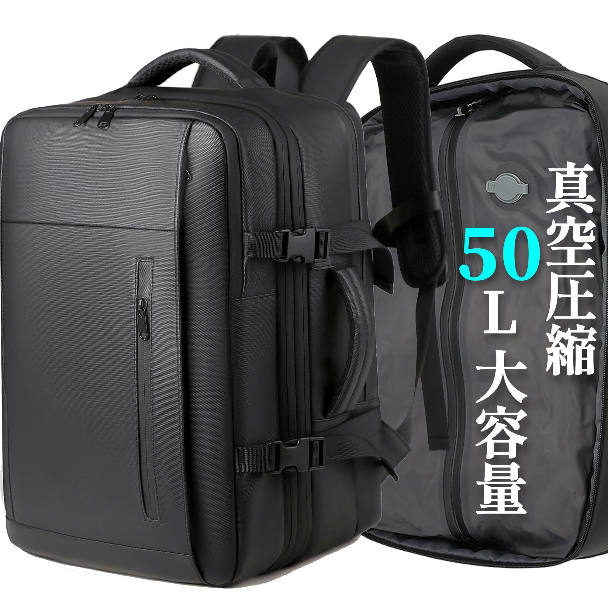 [sushoori] リュック ビジネスリュック バックパック リュックサック 大容量 50L 真空圧縮 メンズ マチ拡張 TSAロック 盗難防止 防水 17インチ PCバッグ 乾湿分離 3way USBポート 通勤 出張 旅行 黒