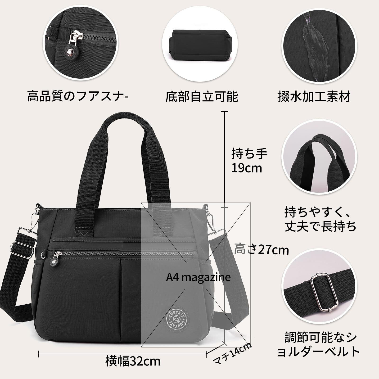 【ちょうどいいサイズ】 マチ14cm × 横幅32cm × 高さ27cm(ショルダー紐は調節可能) 素材:ナイロン、重量:0.38kg
