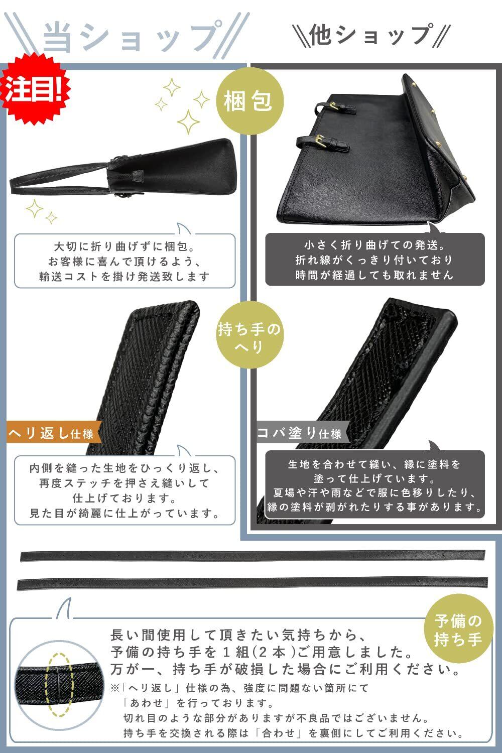 【譲れないこだわり】当ショップは輸送コストを倍以上かけてバッグの形を崩さず綺麗なままで発送します。長い間使用して頂きたい気持ちから予備の持ち手を2本付属しております。持ち手は内側を縫った生地をひっくり返し、再度ステッチを押さえて縫い上げて仕上げています。表地: PUレザー サイズ:高さ27.5cm 横36.5cm マチ12.5cm 重量:650g ビジネスバッグの大きさのわりにはとても軽くて人気です。