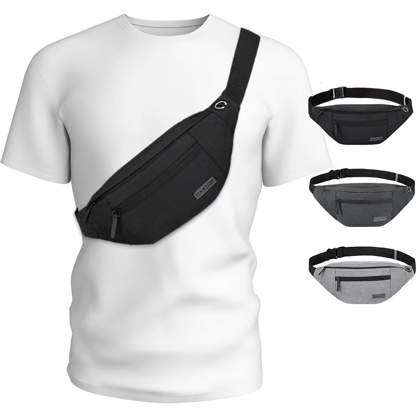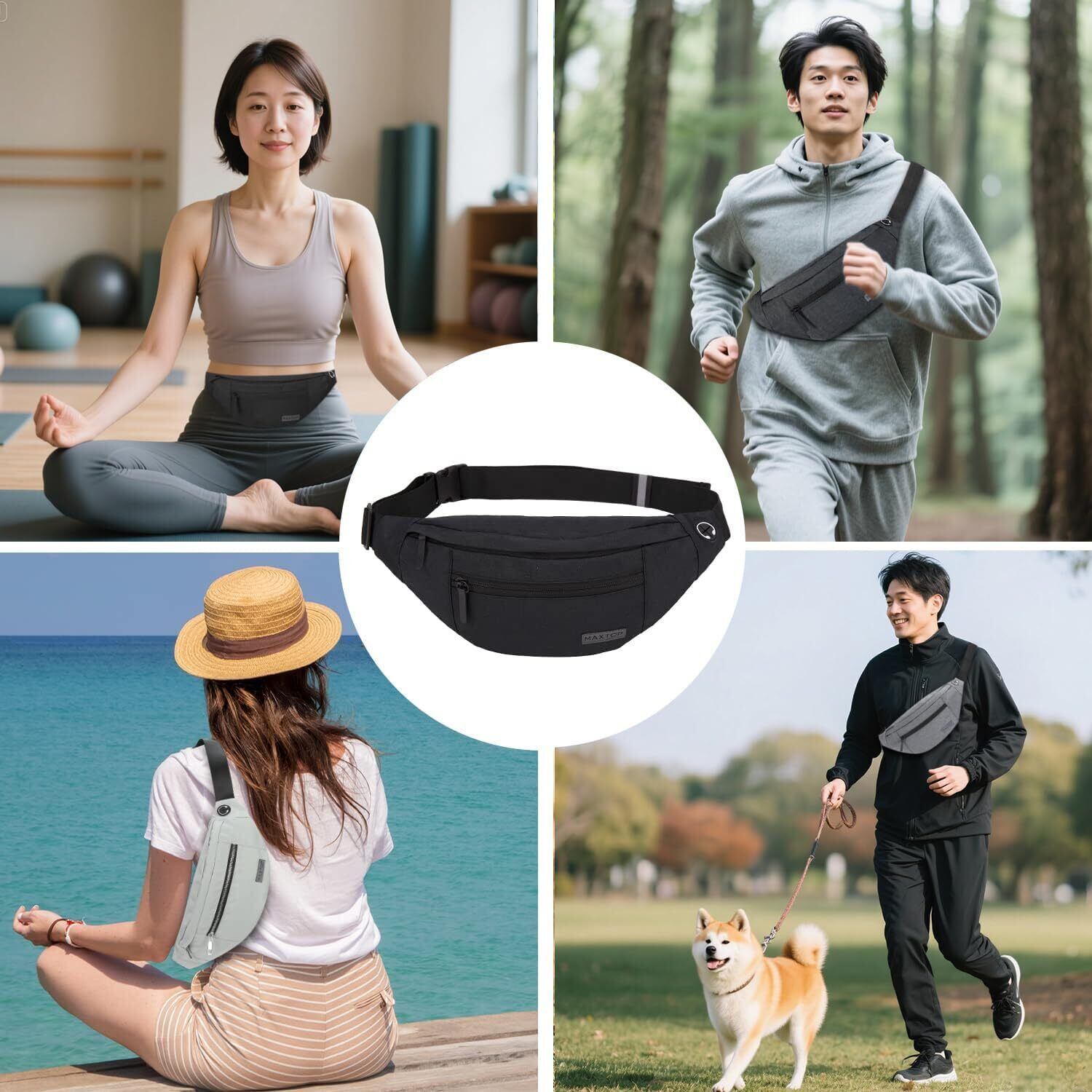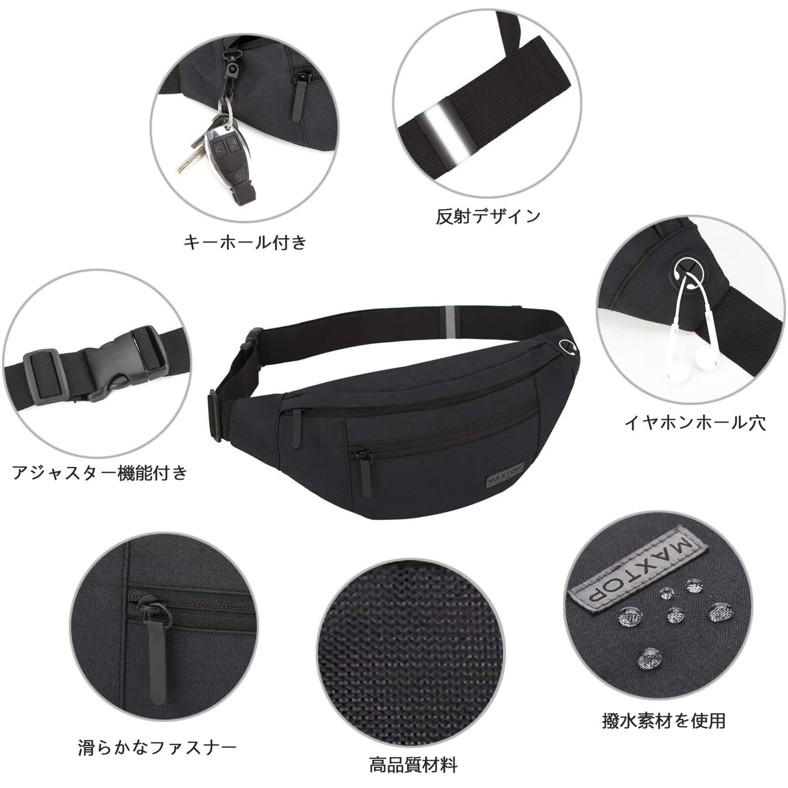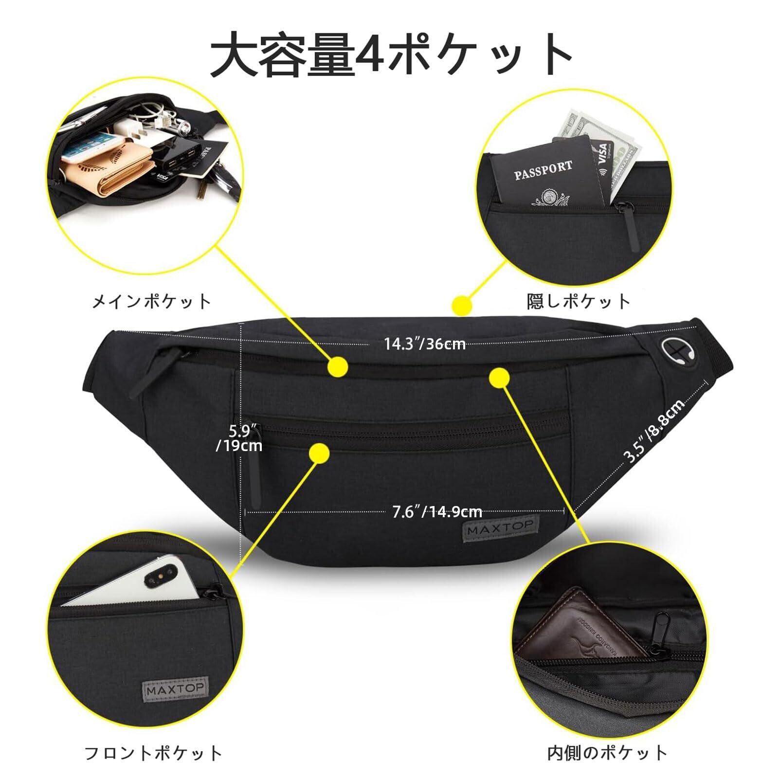 MAXTOP ウエストポーチ 軽量 ウエストバッグ 3way 斜めがけ 大容量 収納力 耐摩擦 多機能 イヤホンホール付き 4ポケット ヒップバック メンズ レディース用 旅行 通学 バイク アウトドア 散歩 ランニング 腰ポーチ