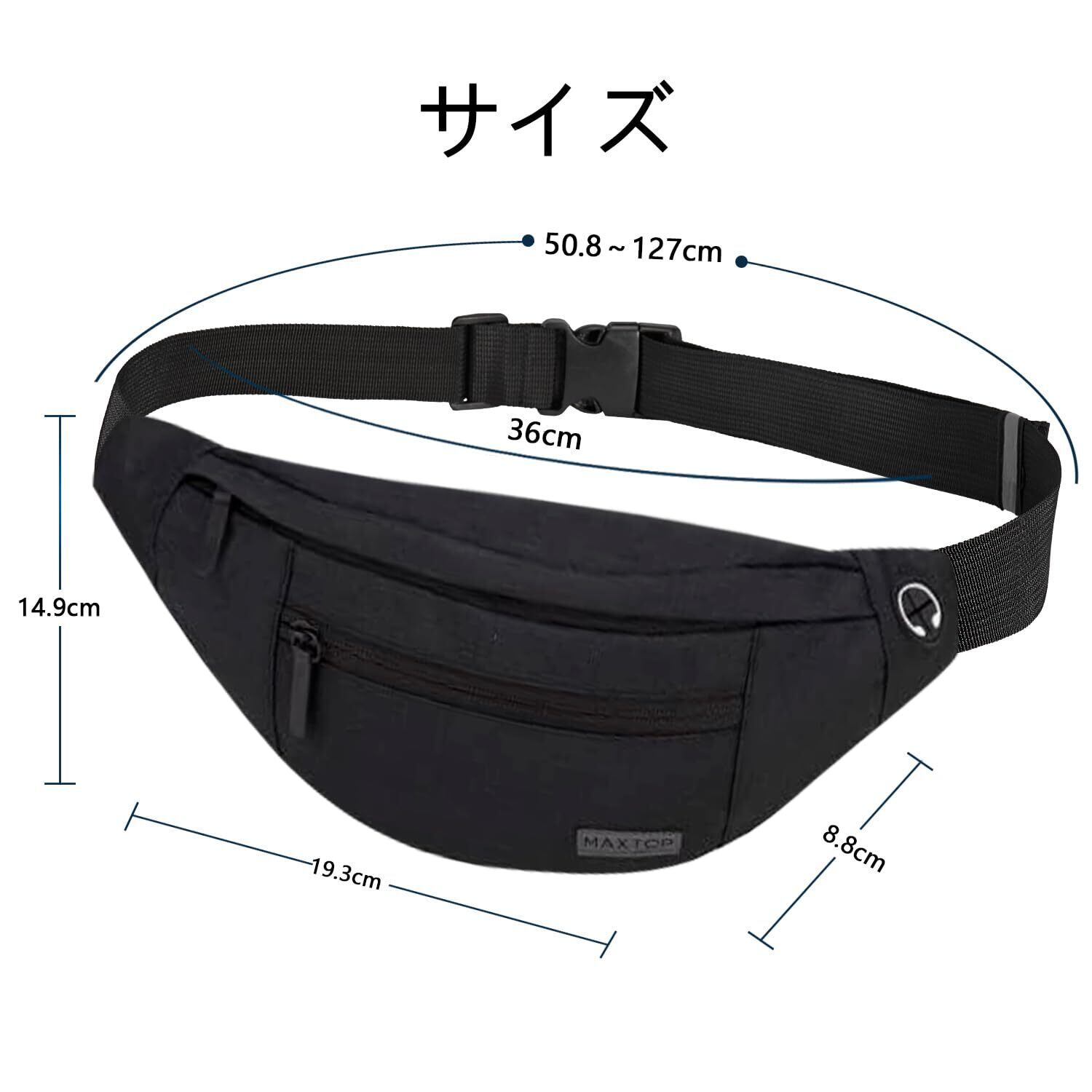 【在庫セール】MAXTOP ウエストポーチ 軽量 ウエストバッグ 3way 斜めがけ 大容量 収納力 耐摩擦 多機能 イヤホンホール付き 4ポケット ヒップバック メンズ レディース用 旅行 通学 バイク アウトドア 散歩 ランニング 腰ポーチ | 無意味ステッカー