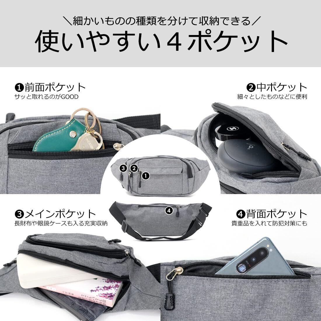 [BEEL] ウエストポーチ メンズ レディース ウエストバッグ ランニング ポーチ 旅行 仕事 作業用 4ポケット 軽量 ブラック