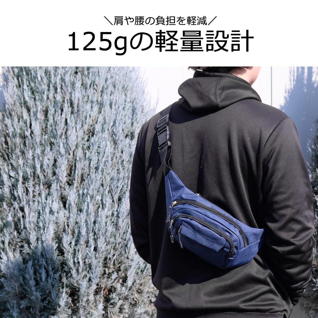 【軽量設計125gで肩や腰の負担を軽減。】サイズ 縦:約14cm 横:約28cm(端部除く) マチ:約8cm ベルト調整可能サイズ:約85cm~約115cm